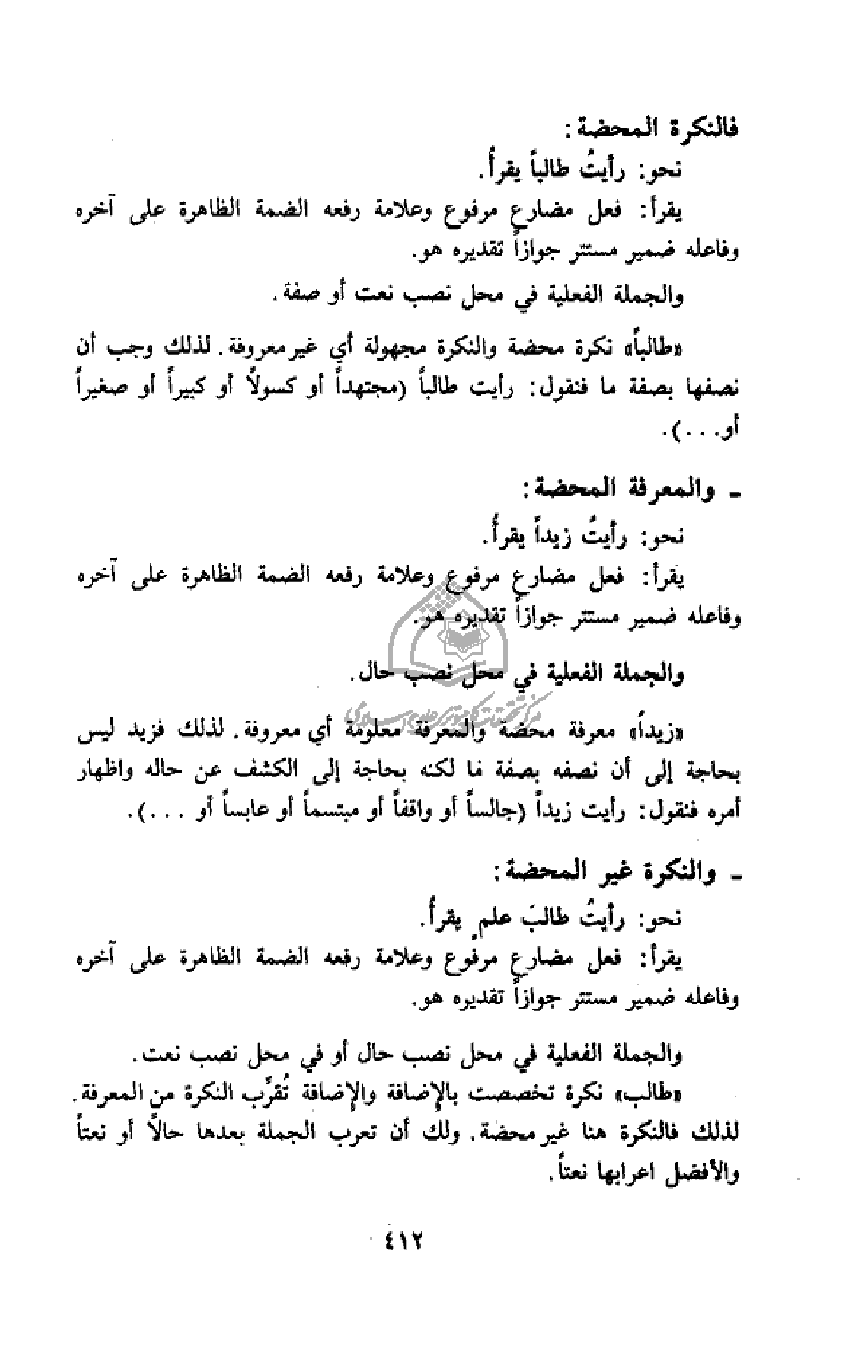 «طالبا» نكرة محضة والنكرة مجهولة أي غير معروفة. لذلك وجب أن نصفها بصفة ما فنقول: رأيت طالبا (مجتهدا أو كسولا أو كبيرا أو صغيرا أو ...).