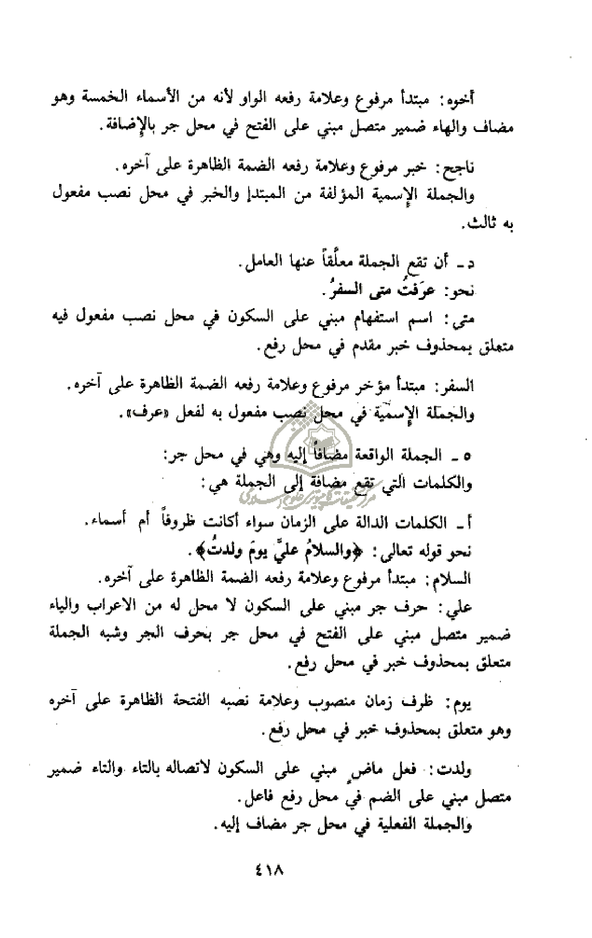 والجملة الإسمية في محل نصب مفعول به لفعل «عرف».