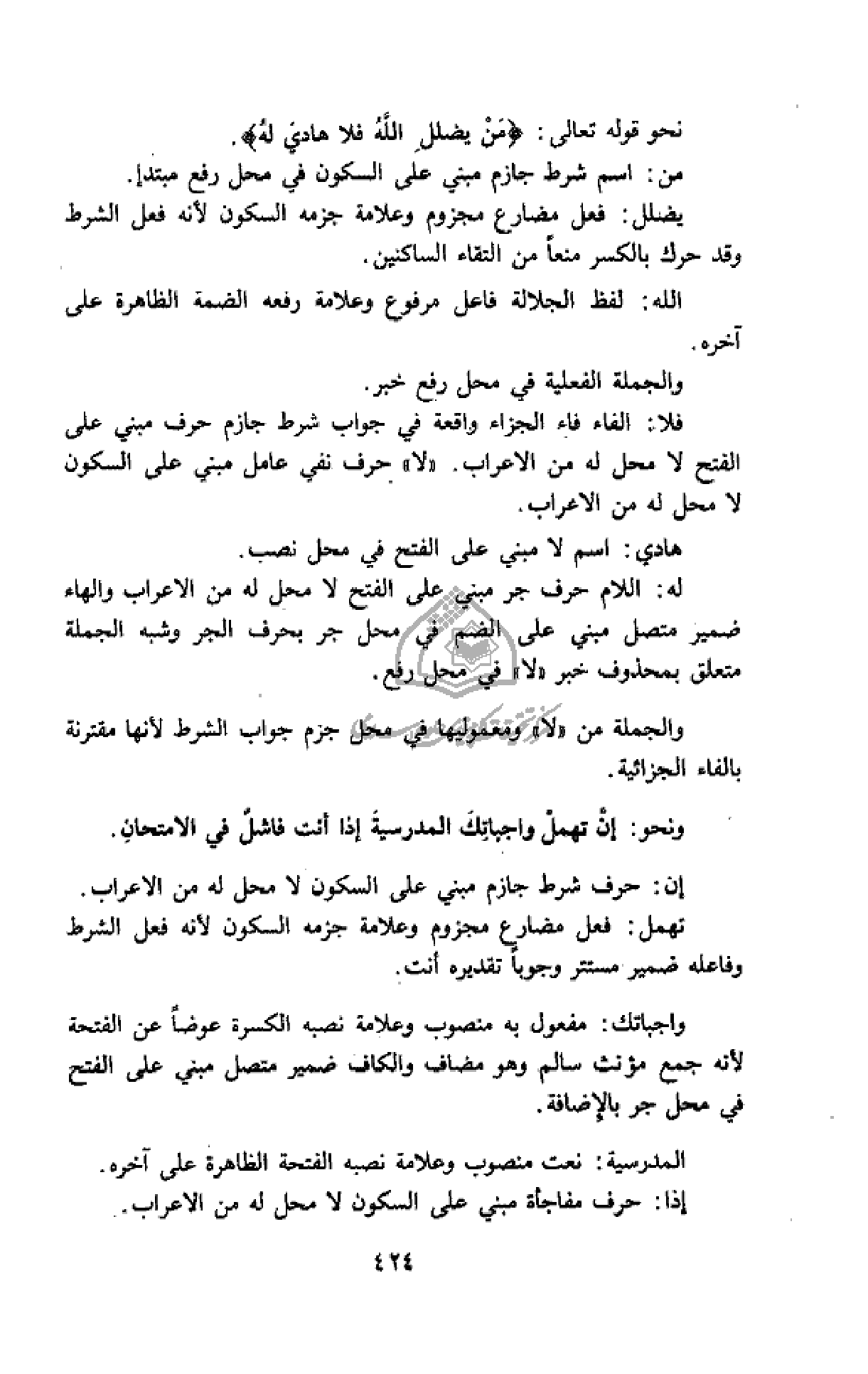 نحو قوله تعالى: مَنْ يُضْلِلِ اللَّهُ فَلا هادِيَ لَهُ.