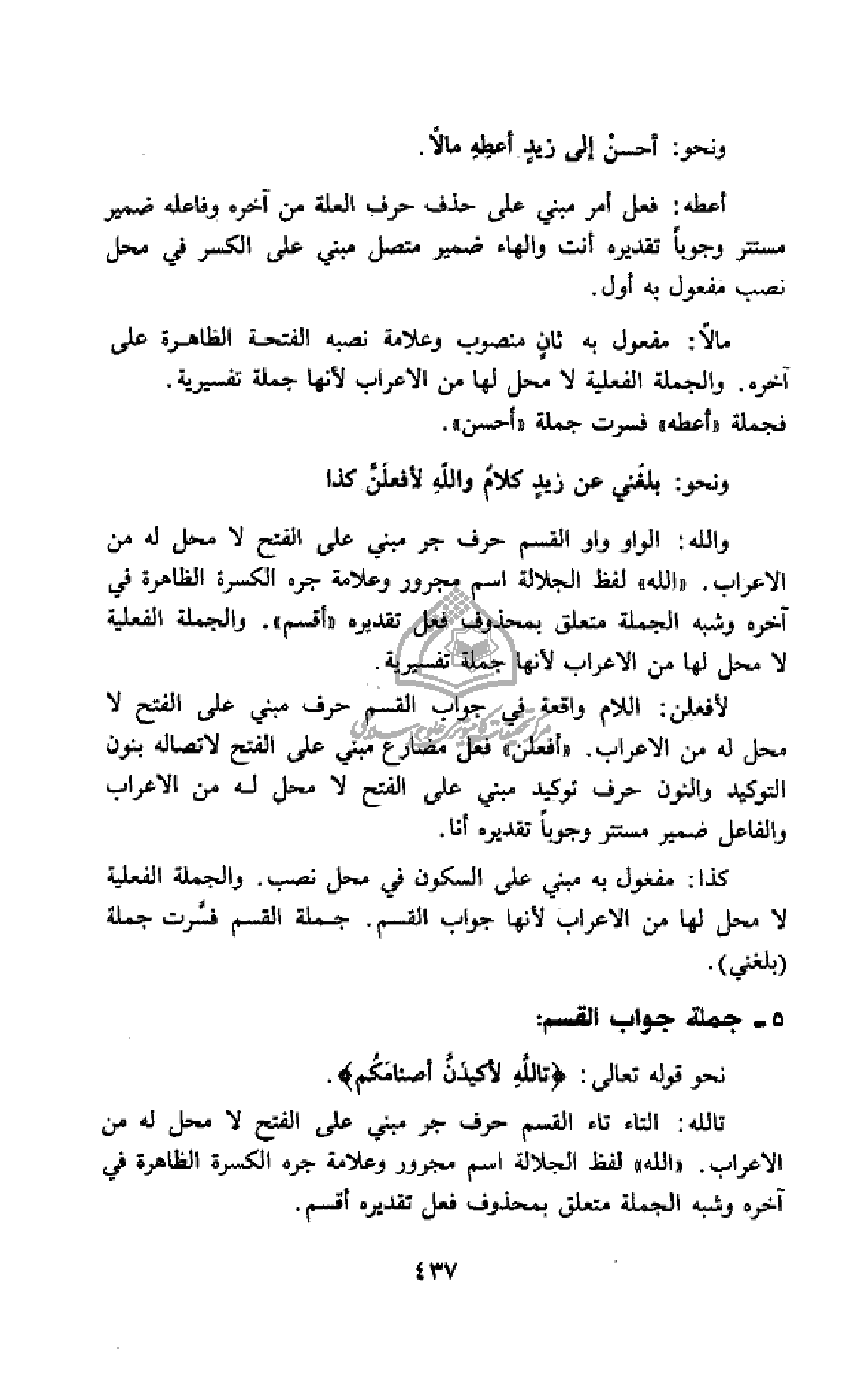 لأفعلن: اللام واقعة في جواب القسم حرف مبني على الفتح لا محل له من الاعراب. «أفعلن» فعل مضارع مبني على الفتح لاتصاله بنون التوكيد والنون حرف توكيد مبني على الفتح لا محل له من الاعراب والفاعل ضمير مستتر وجوبا تقديره أنا.