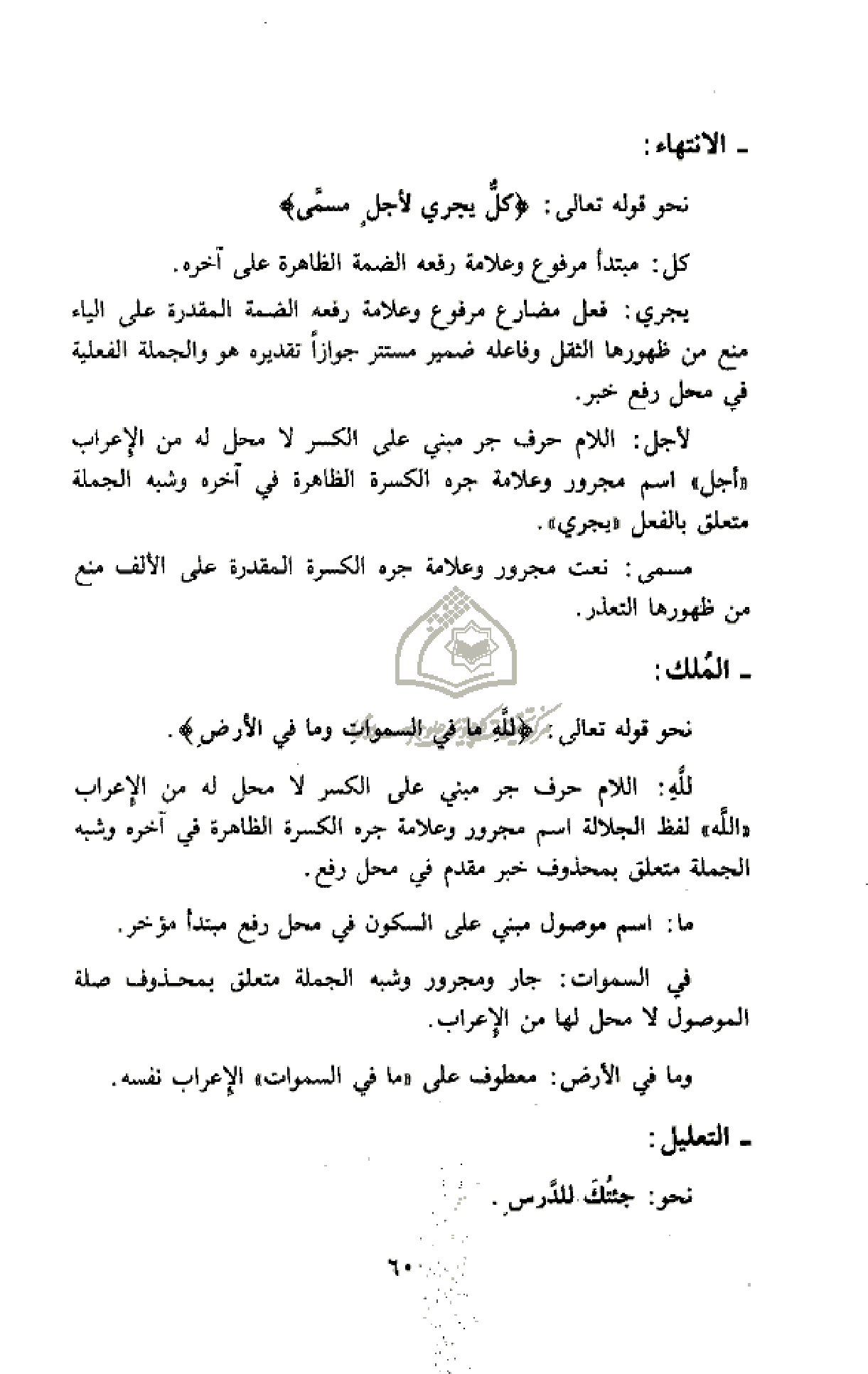 نحو قوله تعالى: كُلٌّ يَجْرِي لِأَجَلٍ مُسَمًّى*