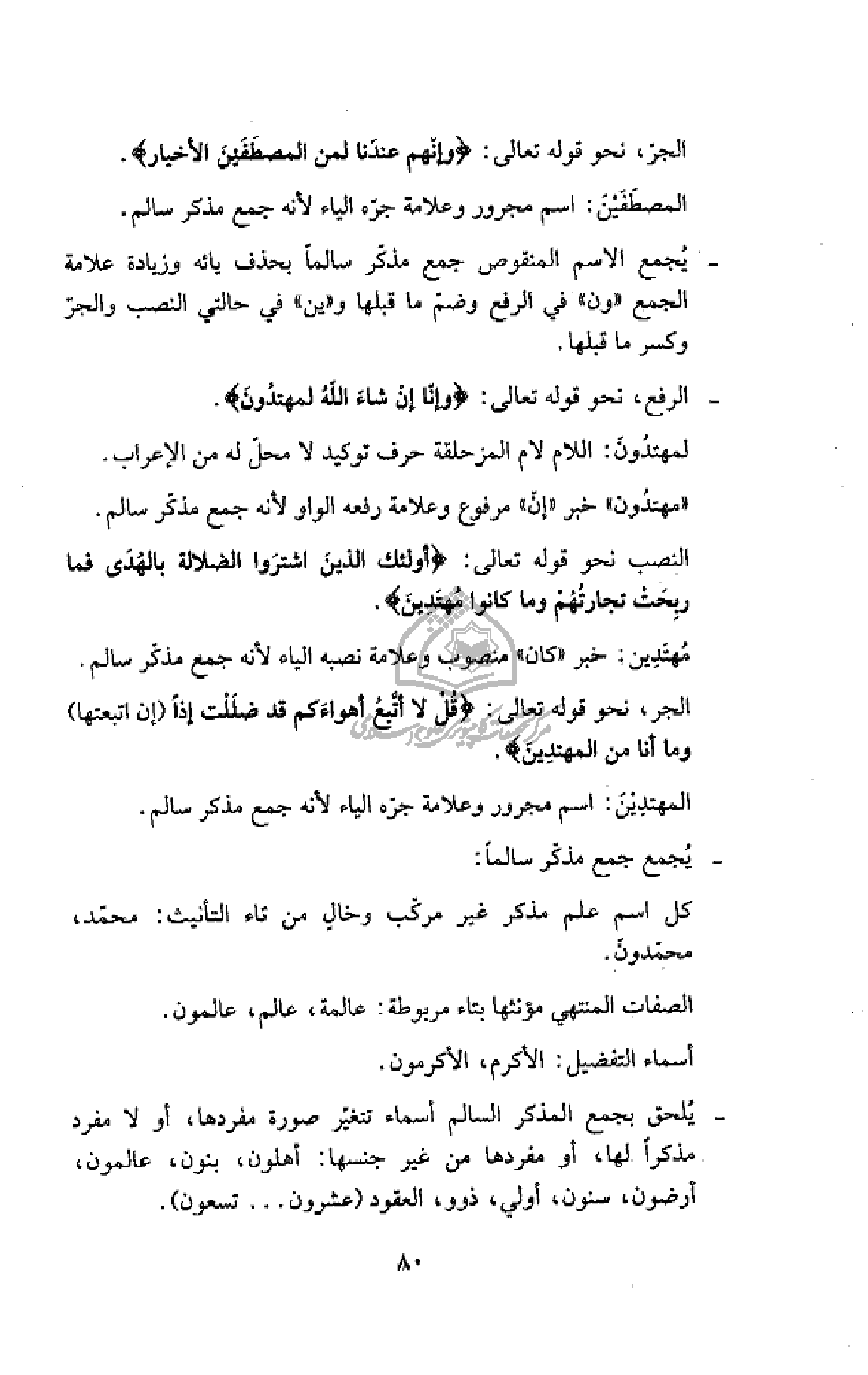 النصب نحو قوله تعالى: أُولئِكَ الَّذِينَ اشْتَرَوُا الضَّلالَةَ بِالْهُدى فَما رَبِحَتْ تِجارَتُهُمْ وَما كانُوا مُهْتَدِينَ.
