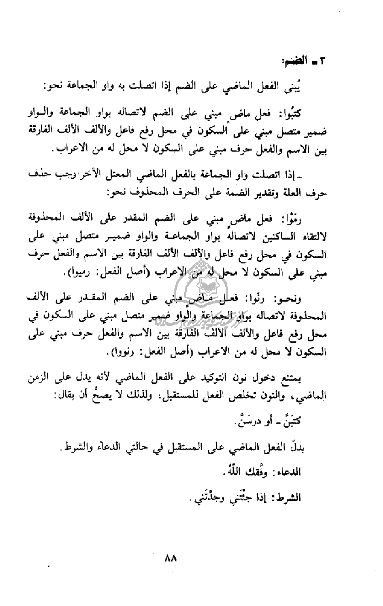 - إذا اتصلت واو الجماعة بالفعل الماضي المعتل الآخر وجب حذف حرف العلة وتقدير الضمة على الحرف المحذوف نحو: