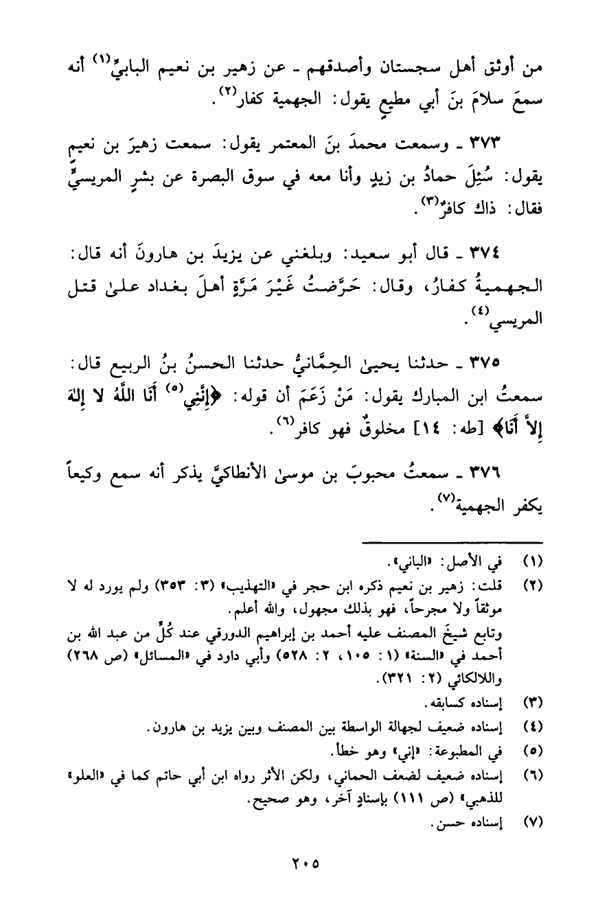 376 - سَمِعْتُ مَحْبُوبَ بْنَ مُوسَى الْأَنْطَاكِيَّ، يَذْكُرُ أَنَّهُ سَمِعَ وَكِيعًا، «§يُكَفِّرُ الْجَهْمِيَّةَ»