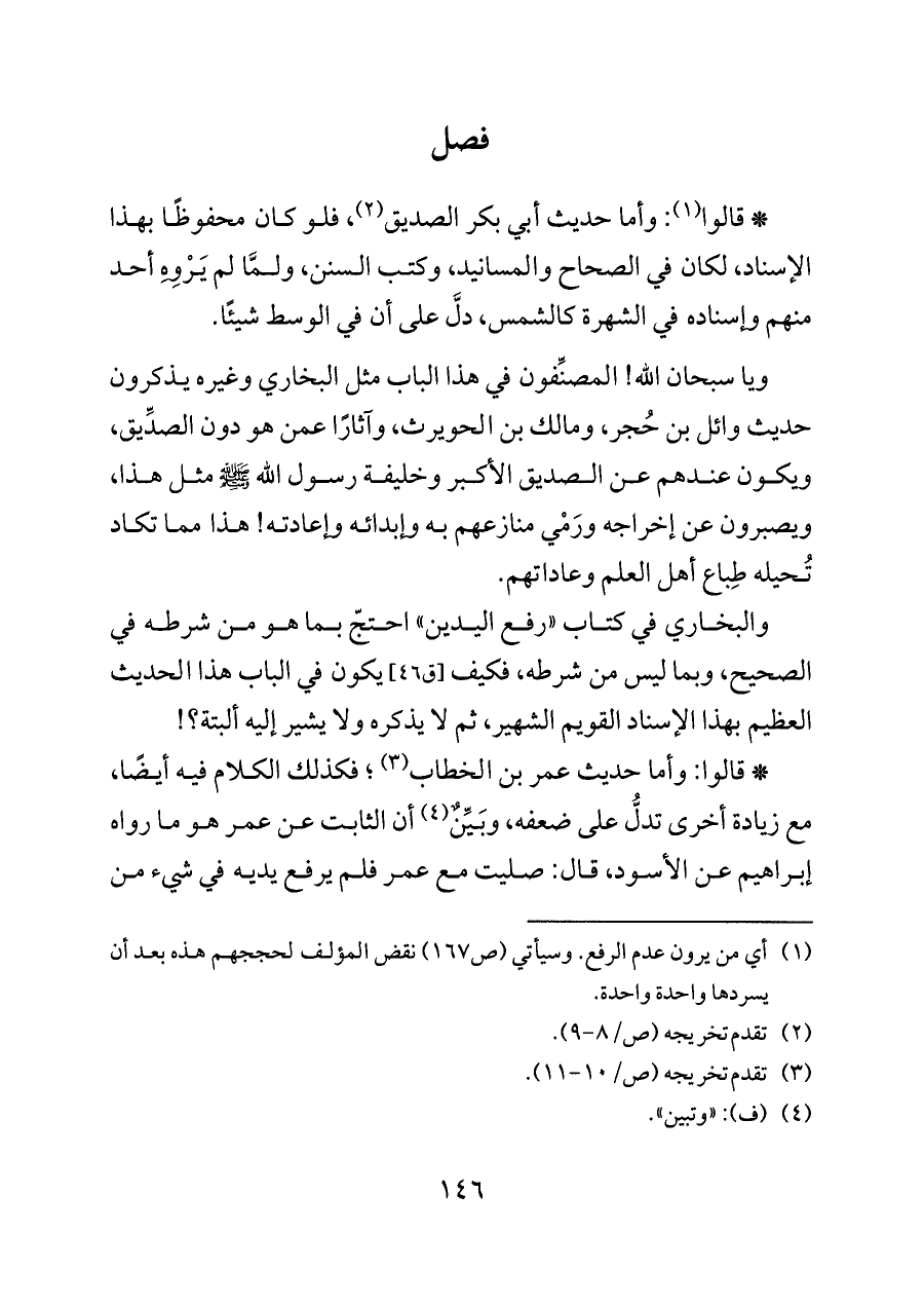 (¬١) أي من يرون عدم الرفع. وسيأتي (ص ١٦٧) نقض المؤلف لحججهم هذه بعد أن يسردها واحدة واحدة.