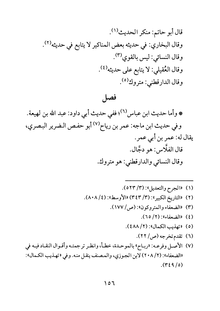 (¬٧) الأصل وفرعه: «رباح» بالموحدة، خطأ، وانظر ترجمته وأقوال النقاد فيه في «الضعفاء»: (٢/ ٢٠٨) لابن الجوزي، والمصنف ينقل منه. وفي «تهذيب الكمال»: (٥/ ٣٤٩).