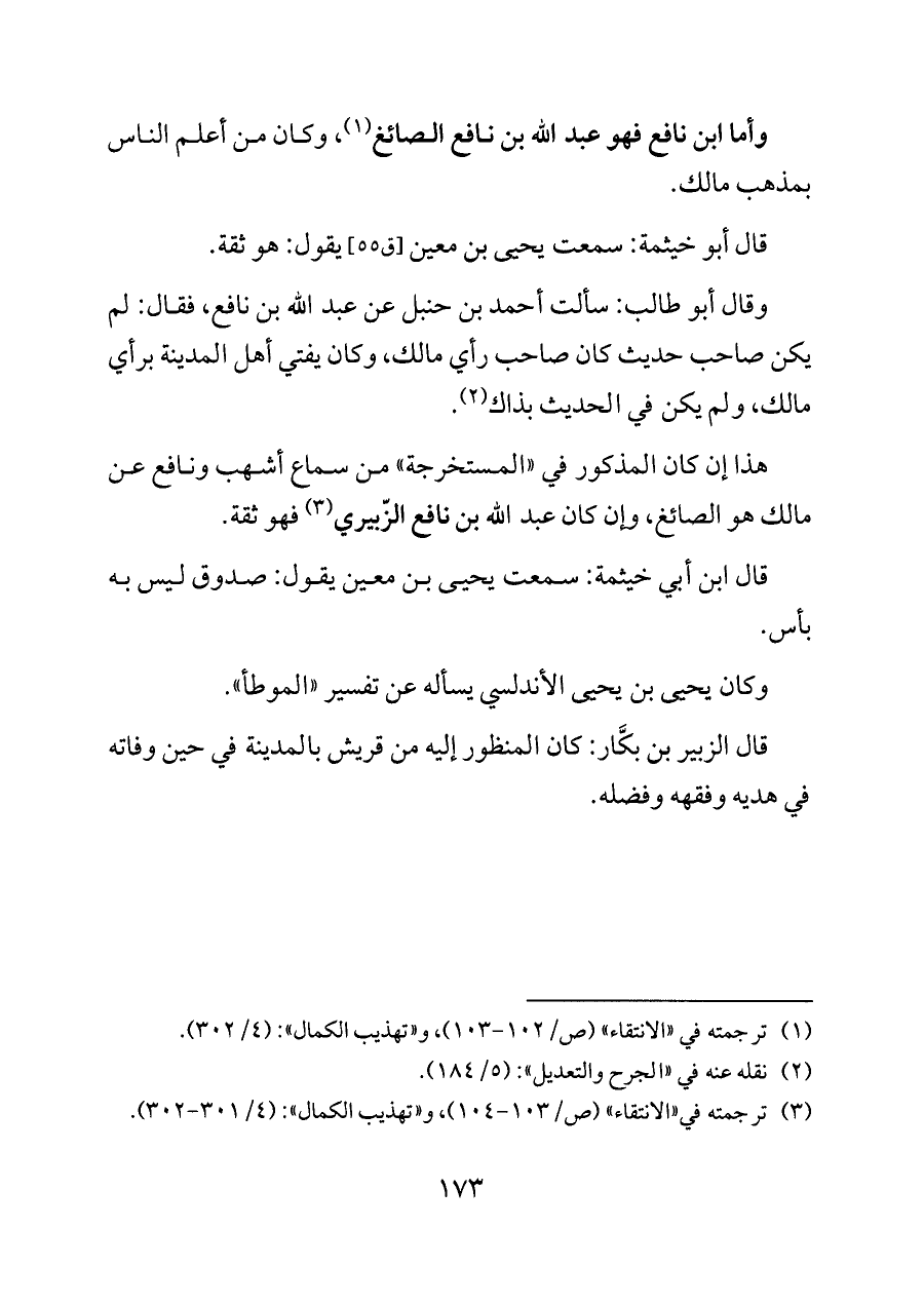 هذا إن كان المذكور في «المستخرجة» من سماع أشهب ونافع عن مالك هو الصائغ، وإن كان عبد الله بن نافع الزّبيري (¬٣) فهو ثقة.