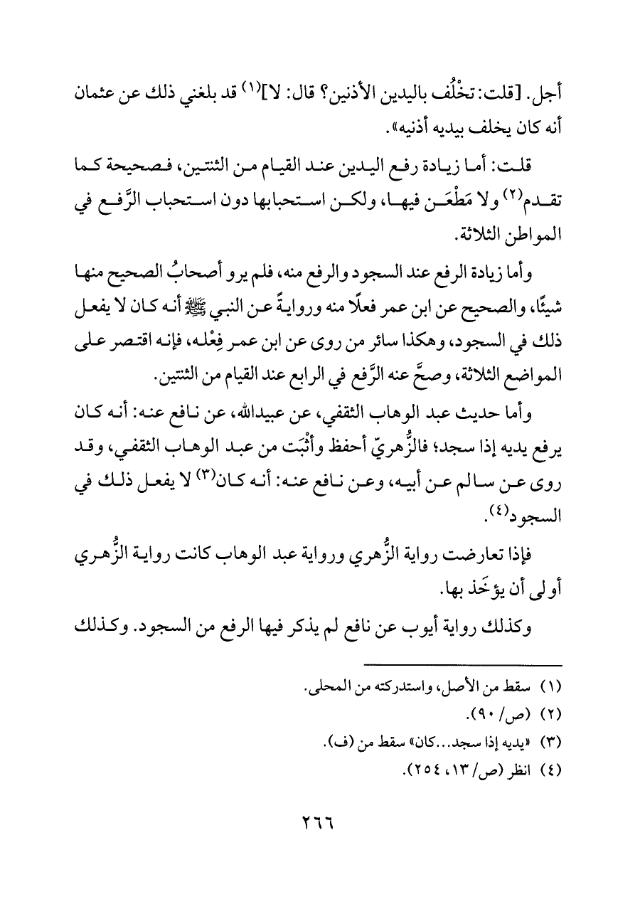 قلت: أما زيادة رفع اليدين عند القيام من الثنتين، فصحيحة كما تقدم (¬٢) ولا مَطْعَن فيها، ولكن استحبابها دون استحباب الرَّفع في المواطن الثلاثة.