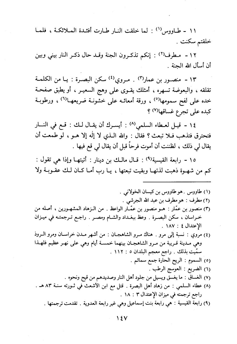 12- مطرف «2» : إنكم تذكرون الجنة وقد حال ذكر النار بيني وبين أن أسأل الله الجنة.