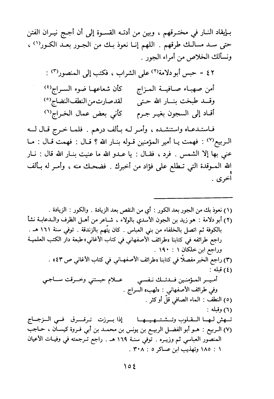 42- حبس أبو دلامة «2» على الشراب، فكتب إلى المنصور «3» :