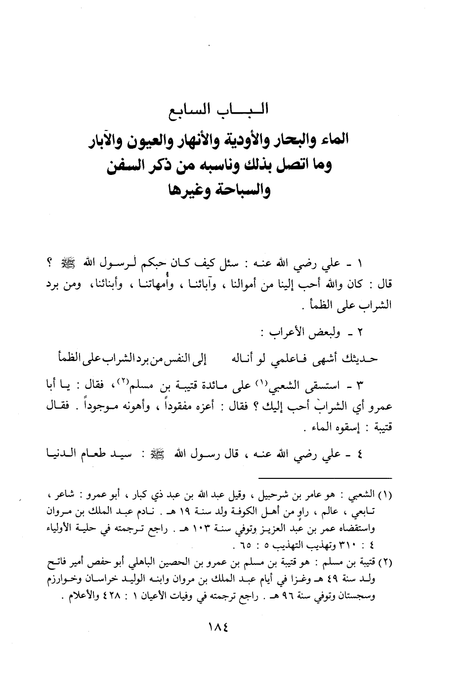 الباب السابع الماء والبحار والأودية والأنهار والعيون والآبار وما اتصل بذلك وناسبه من ذكر السفن والسباحة وغيرها