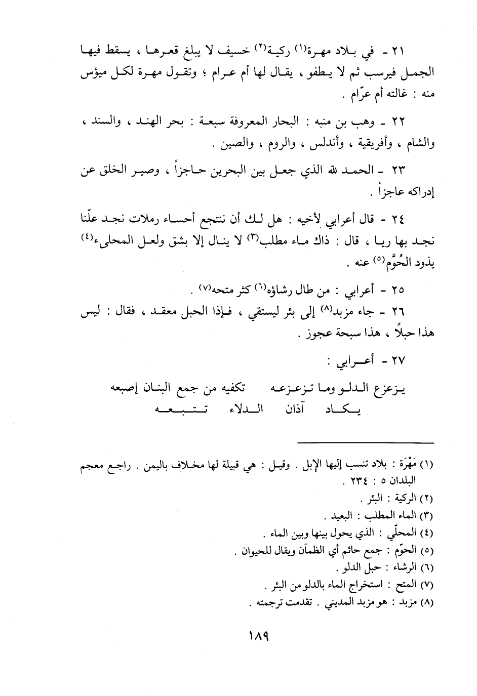 26- جاء مزبد «8» إلى بئر ليستقي، فإذا الحبل معقد، فقال: ليس هذا حبلا، هذا سبحة عجوز.