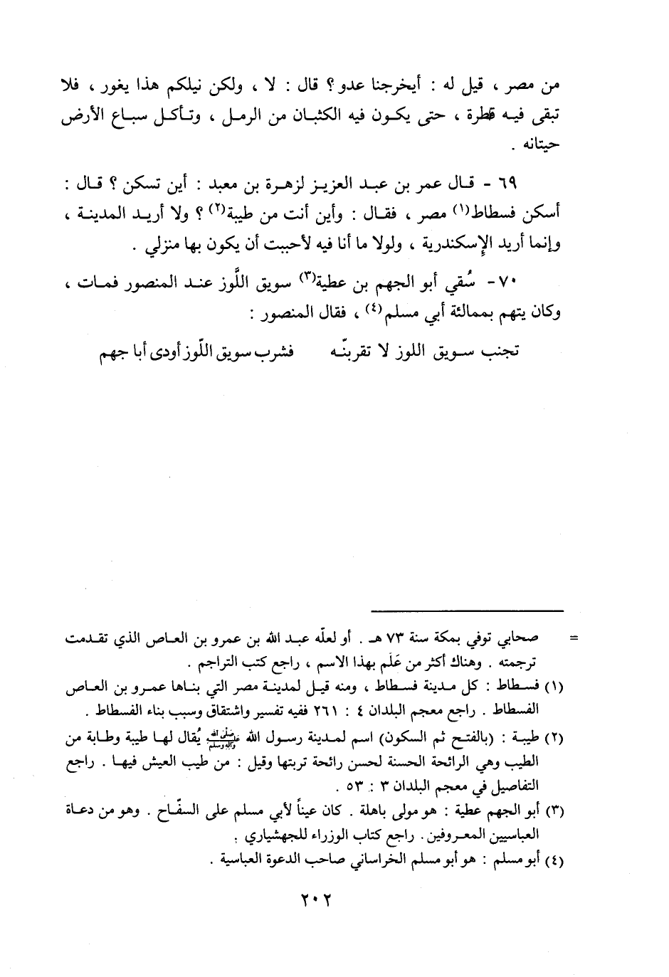 70- سقي أبو الجهم بن عطية «3» سويق اللّوز عند المنصور فمات، وكان يتهم بممالئة أبي مسلم «4» ، فقال المنصور:
