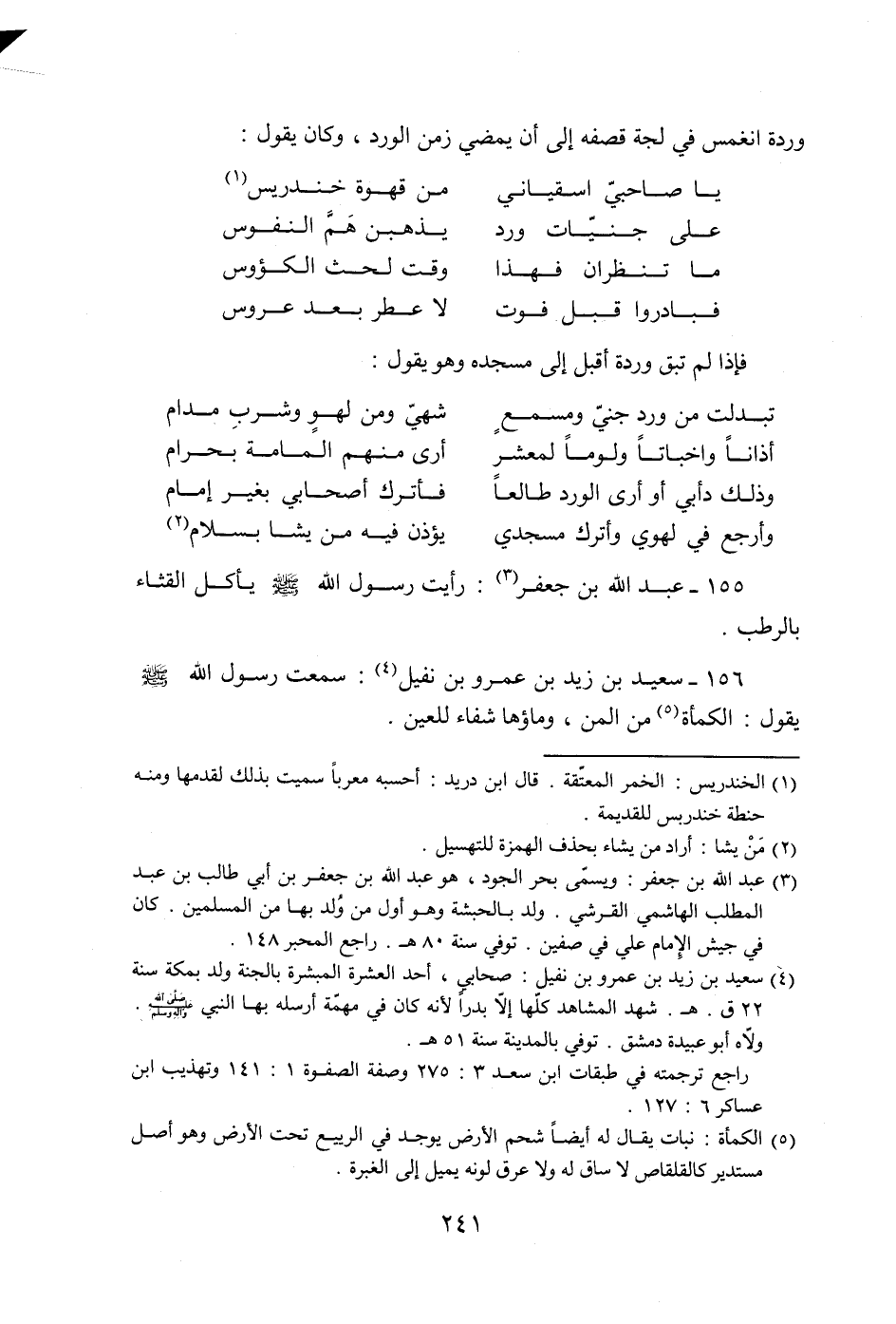 156- سعيد بن زيد بن عمرو بن نفيل «4» : سمعت رسول الله صلّى الله عليه وسلّم يقول: الكمأة «5» من المن، وماؤها شفاء للعين.