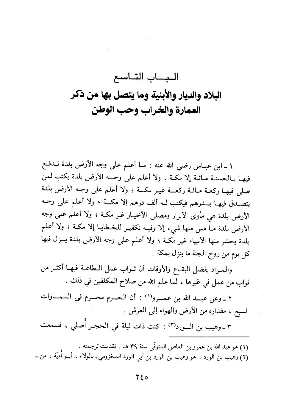 الباب التاسع البلاد والديار والأبنية وما يتصل بها من ذكر العمارة والخراب وحب الوطن