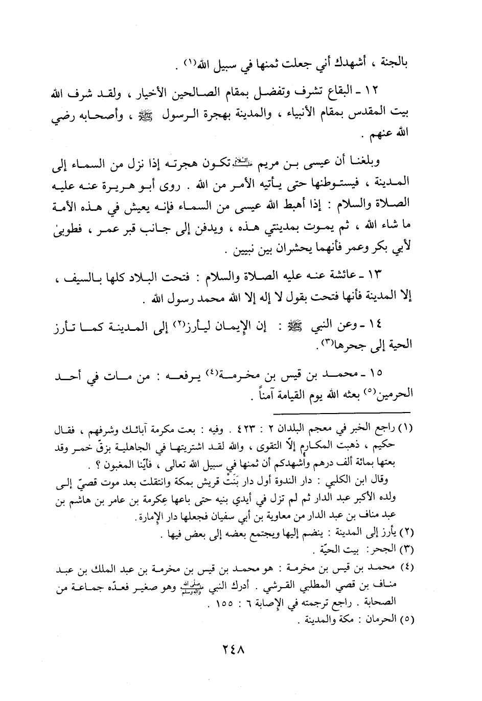 12- البقاع تشرف وتفضل بمقام الصالحين الأخيار، ولقد شرف الله بيت المقدس بمقام الأنبياء، والمدينة بهجرة الرسول صلّى الله عليه وسلّم، وأصحابه رضي الله عنهم.