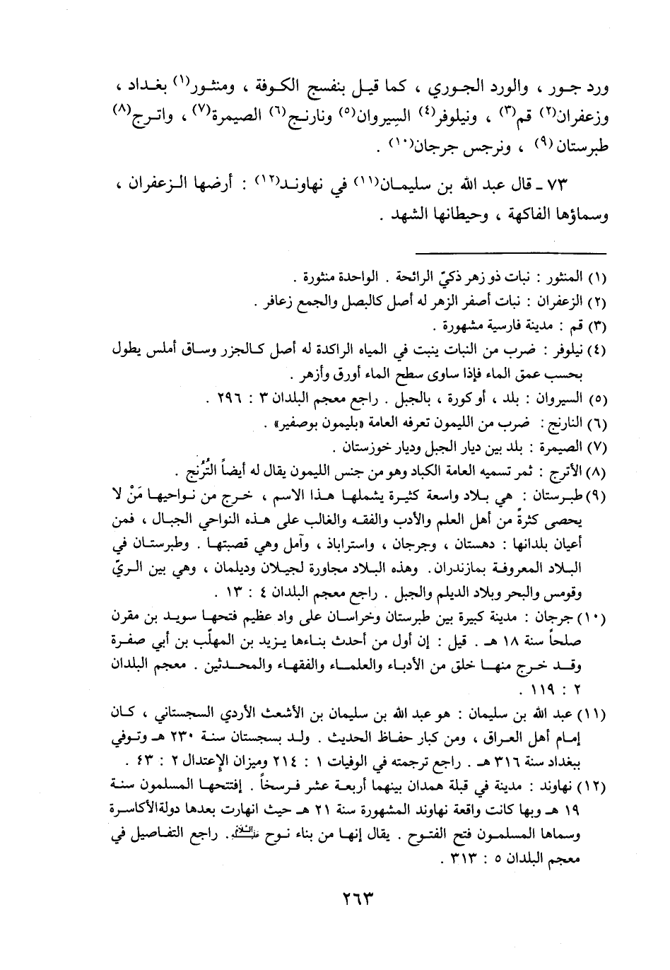73- قال عبد الله بن سليمان «11» في نهاوند «12» : أرضها الزعفران، وسماؤها الفاكهة، وحيطانها الشهد.