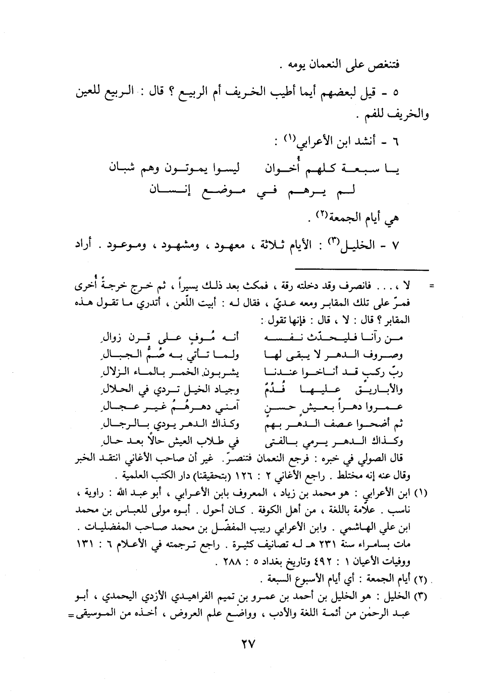7- الخليل «3» : الأيام ثلاثة، معهود، ومشهود، وموعود. أراد