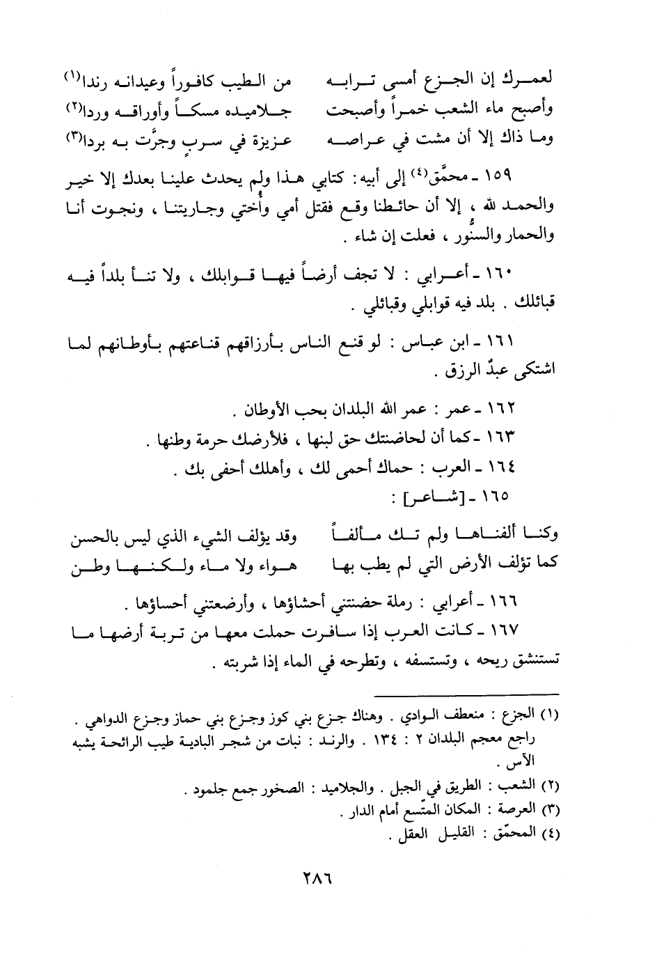167- كانت العرب إذا سافرت حملت معها من تربة أرضها ما تستنشق ريحه، وتستسفه، وتطرحه في الماء إذا شربته.