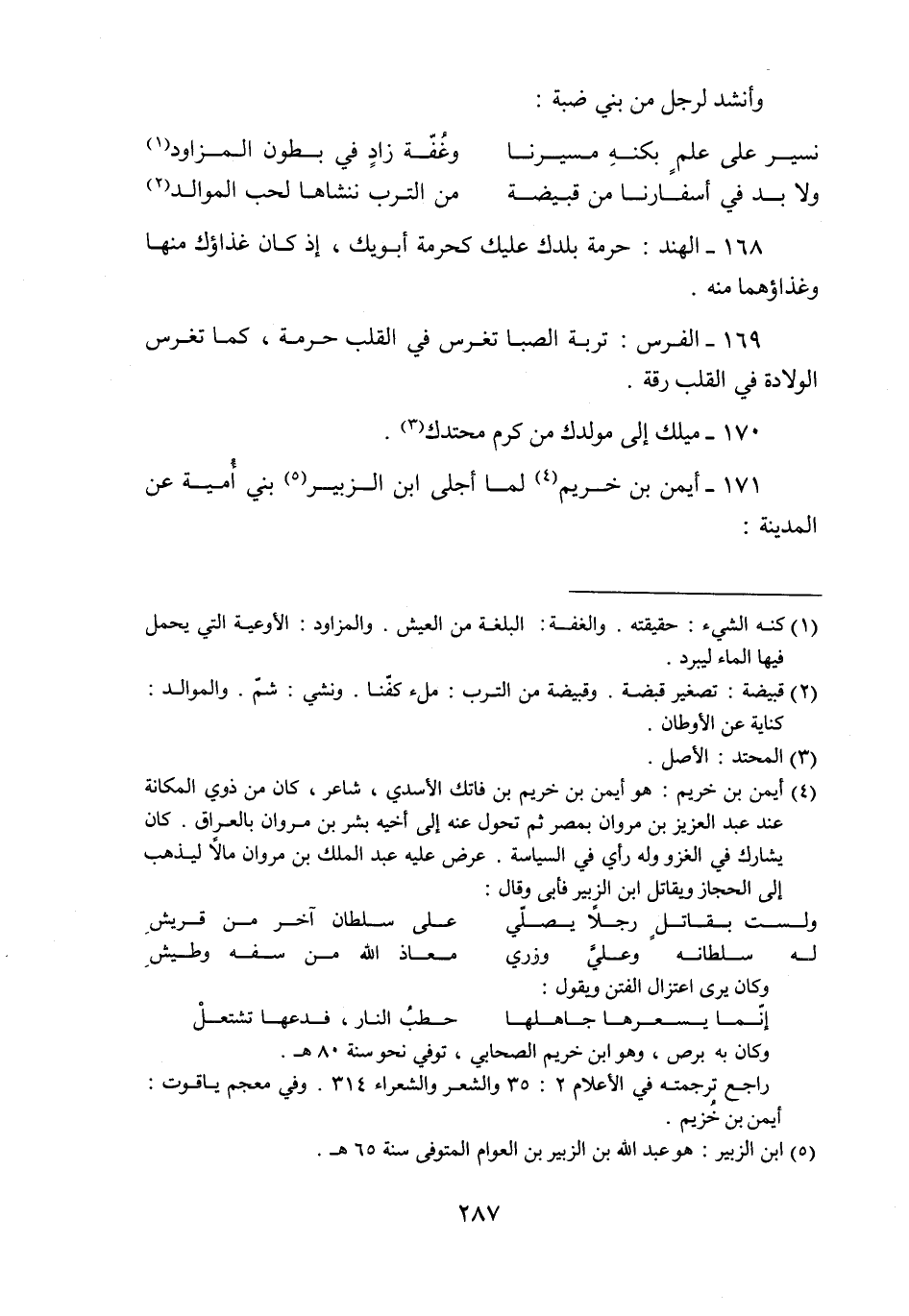 171- أيمن بن خريم «4» لما أجلى ابن الزبير «5» بني أمية عن المدينة: