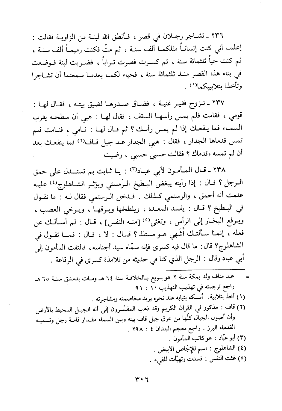 236- تشاجر رجلان في قصر، فأنطق الله لبنة من الزاوية فقالت: