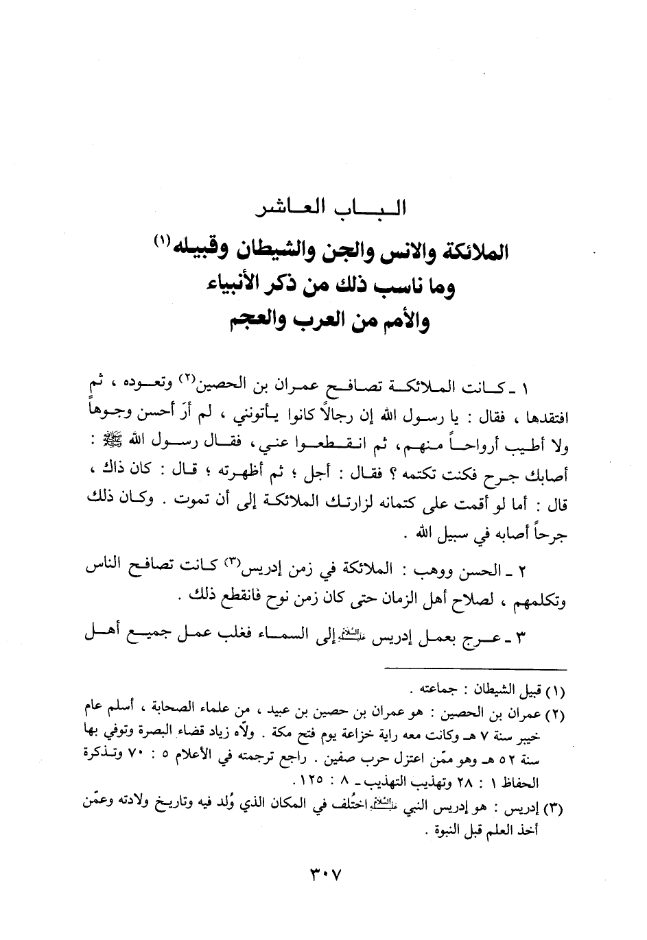 الباب العاشر الملائكة والانس والجن والشيطان وقبيله «1» وما ناسب ذلك من ذكر الأنبياء والأمم من العرب والعجم