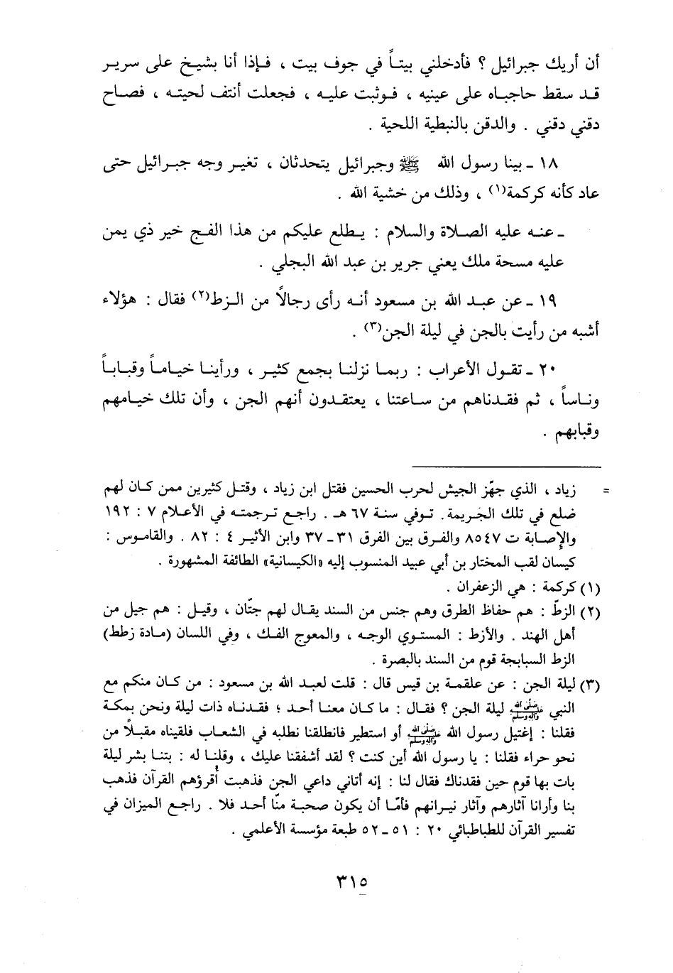 19- عن عبد الله بن مسعود أنه رأى رجالا من الزط «2» فقال: هؤلاء أشبه من رأيت بالجن في ليلة الجن «3» .