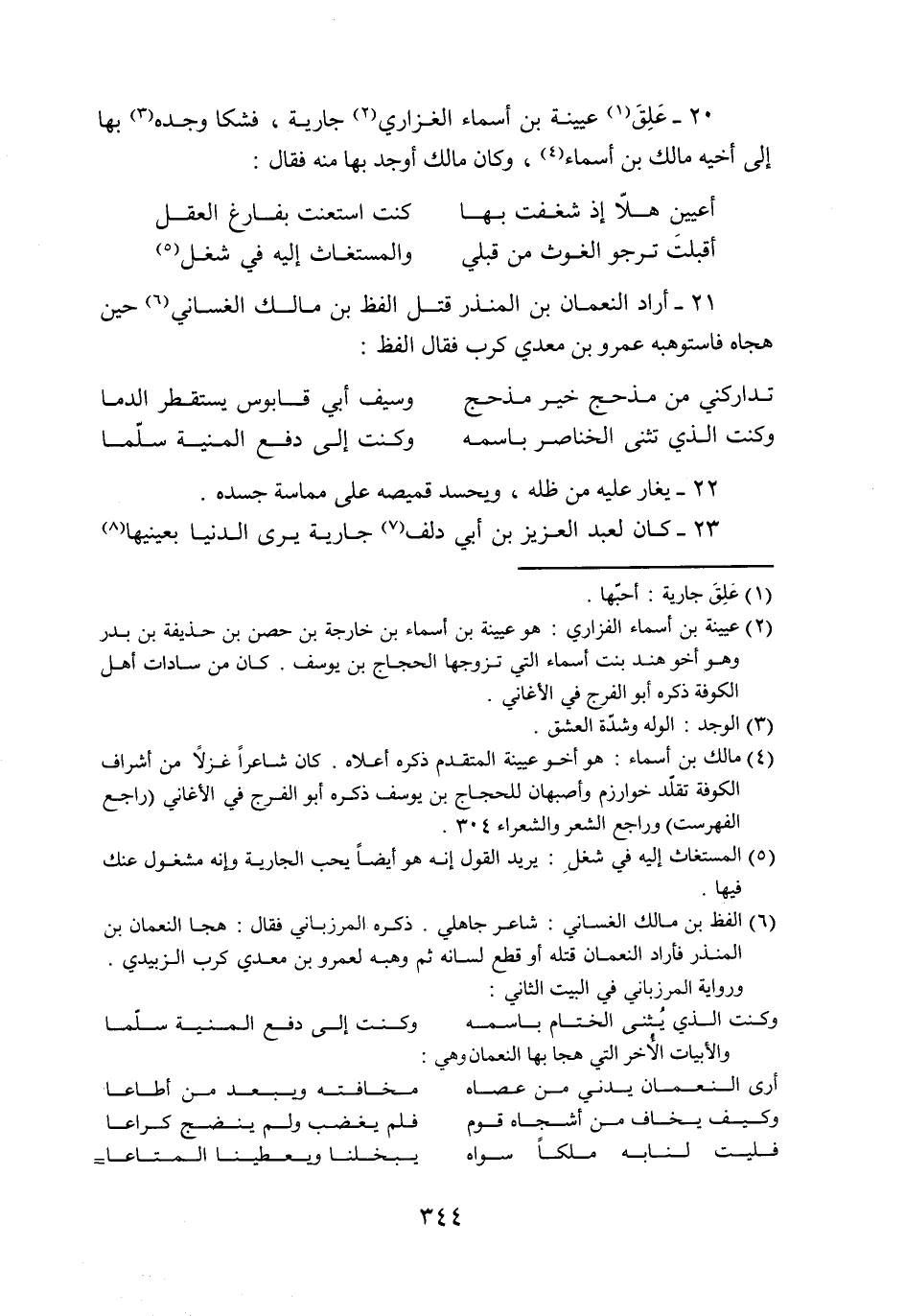 20- علق «1» عيينة بن أسماء الغزاري «2» جارية، فشكا وجده»