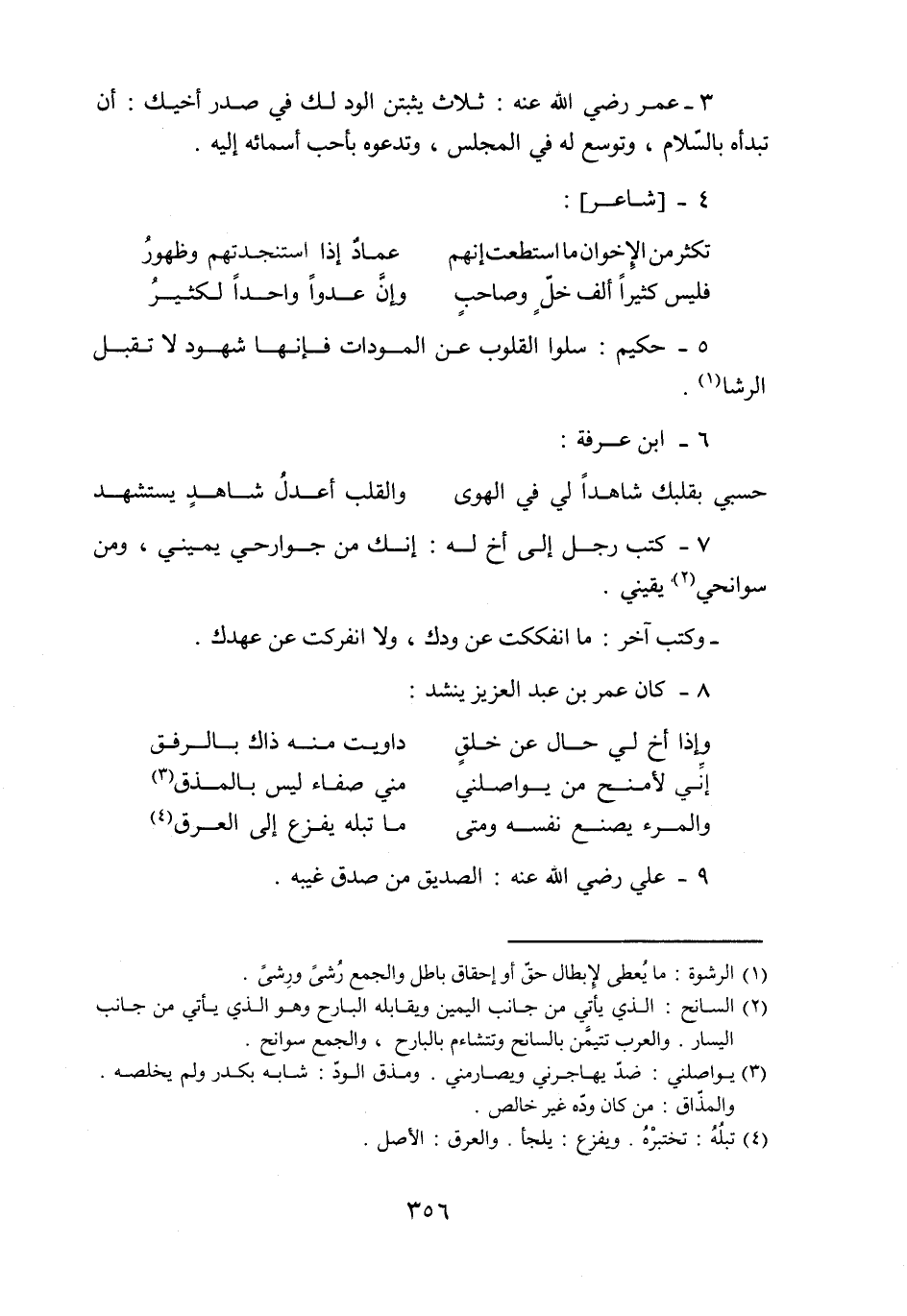 5- حكيم: سلوا القلوب عن المودات فإنها شهود لا تقبل الرشا «1» .