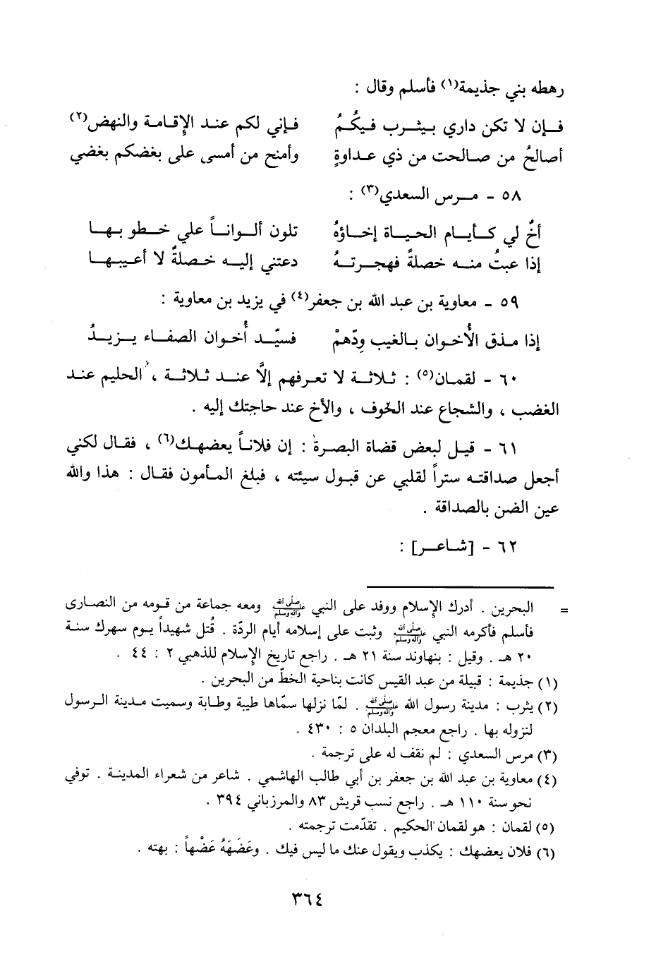59- معاوية بن عبد الله بن جعفر «4» في يزيد بن معاوية: