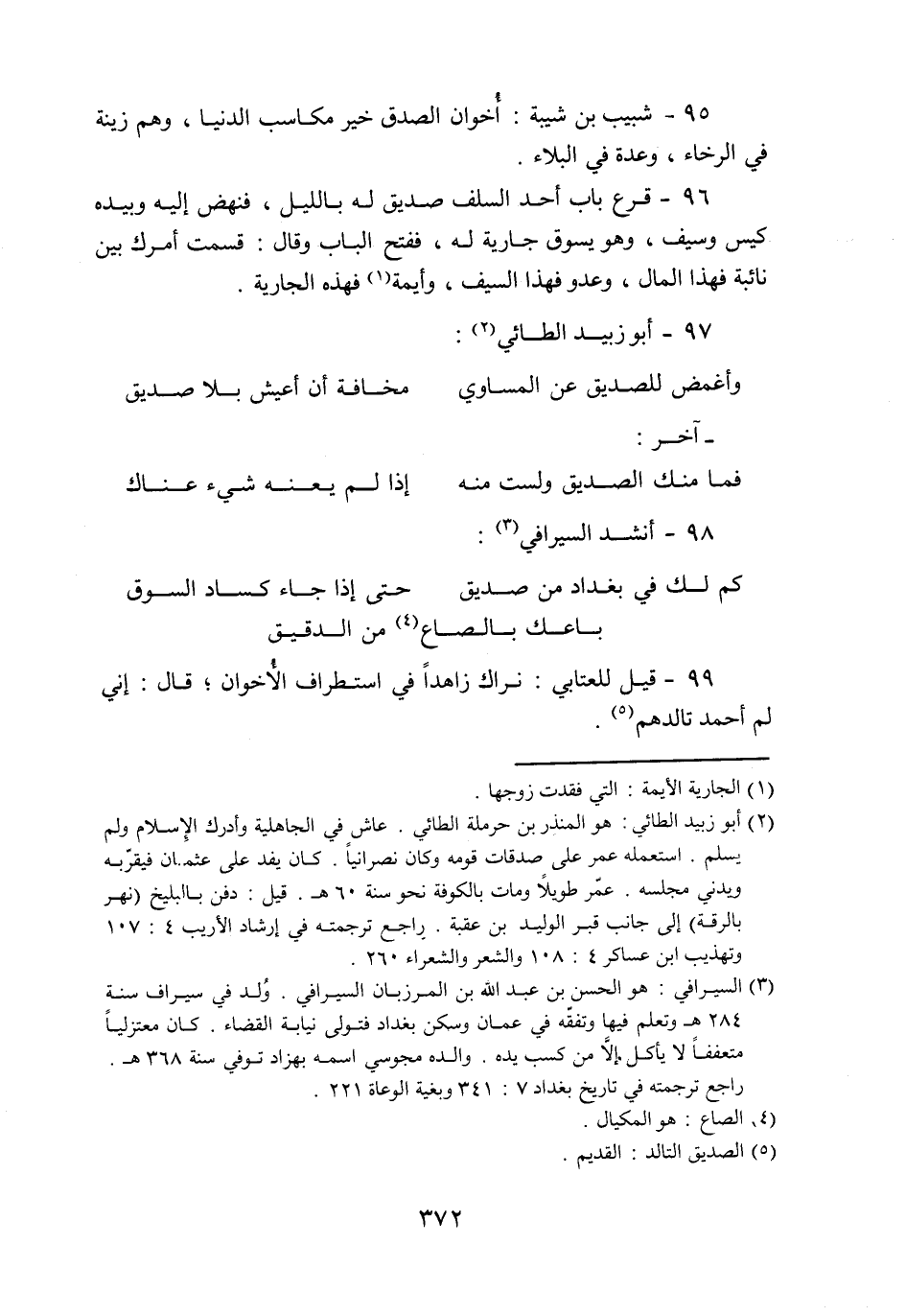 95- شبيب بن شيبة: أخوان الصدق خير مكاسب الدنيا، وهم زينة في الرخاء، وعدة في البلاء.