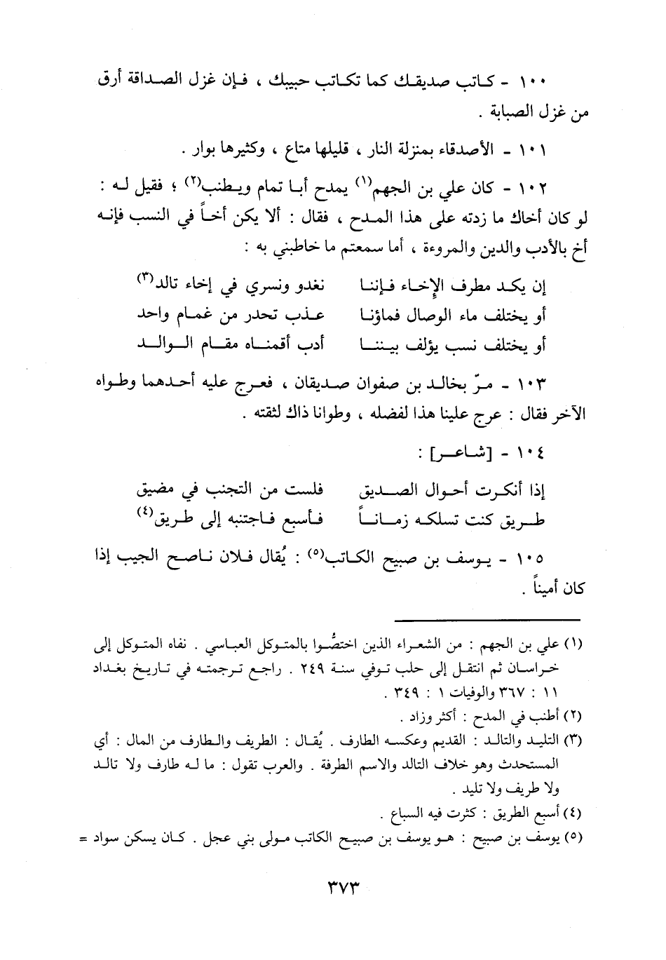 103- مرّ بخالد بن صفوان صديقان، فعرج عليه أحدهما وطواه الآخر فقال: عرج علينا هذا لفضله، وطوانا ذاك لثقته.
