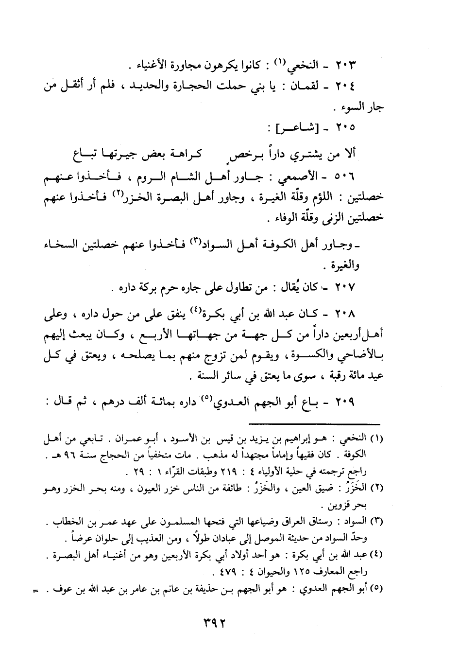 203- النخعي «1» : كانوا يكرهون مجاورة الأغنياء.