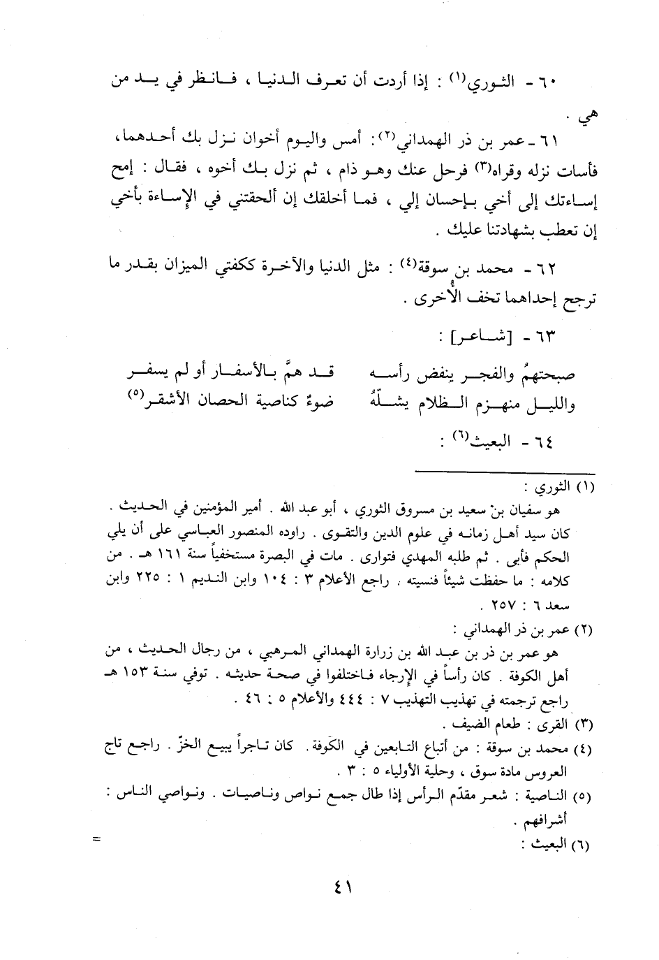 60- الثوري «1» : إذا أردت أن تعرف الدنيا، فانظر في يد من هي.