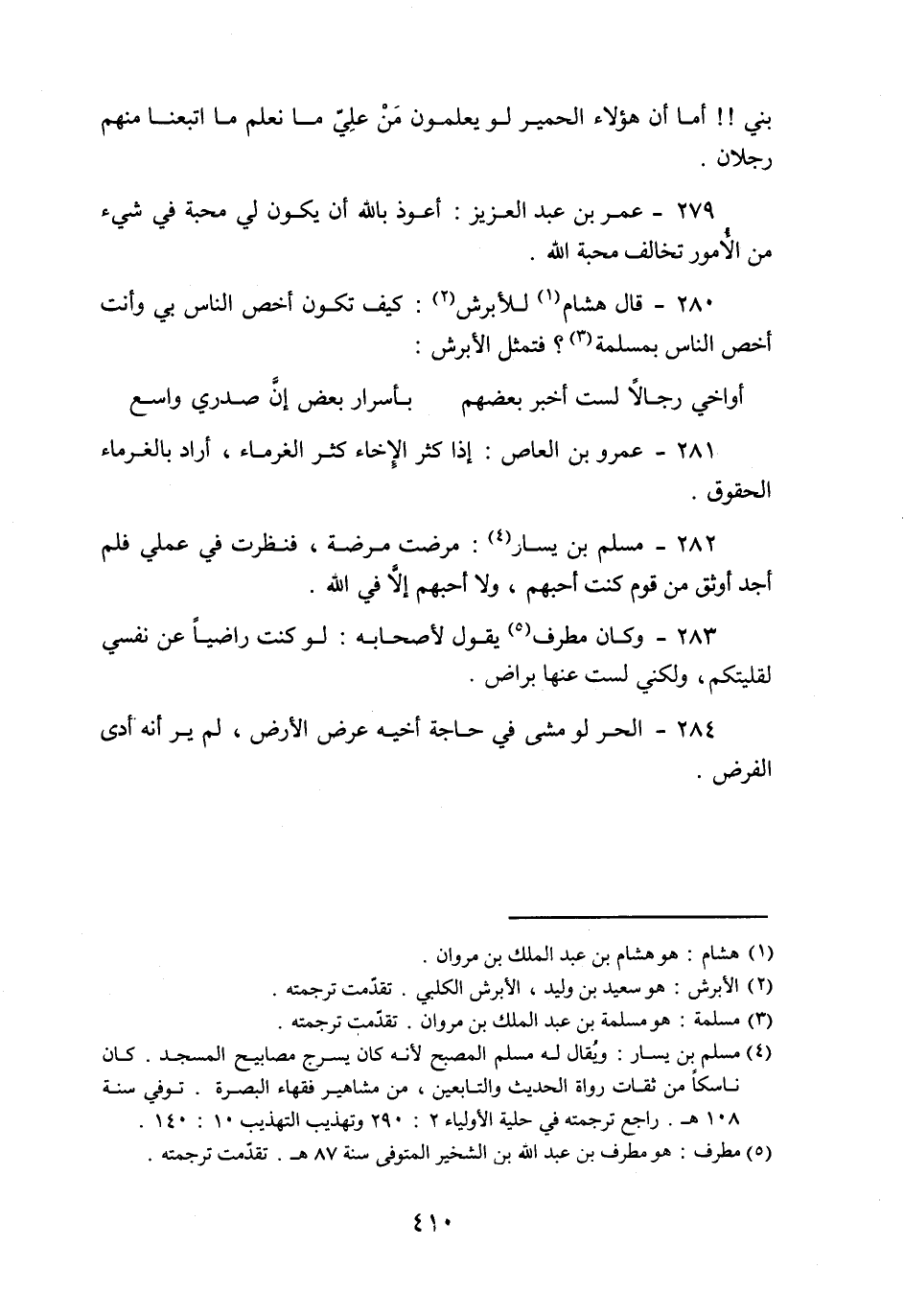 282- مسلم بن يسار «4» : مرضت مرضة، فنظرت في عملي فلم أجد أوثق من قوم كنت أحبهم، ولا أحبهم إلّا في الله.