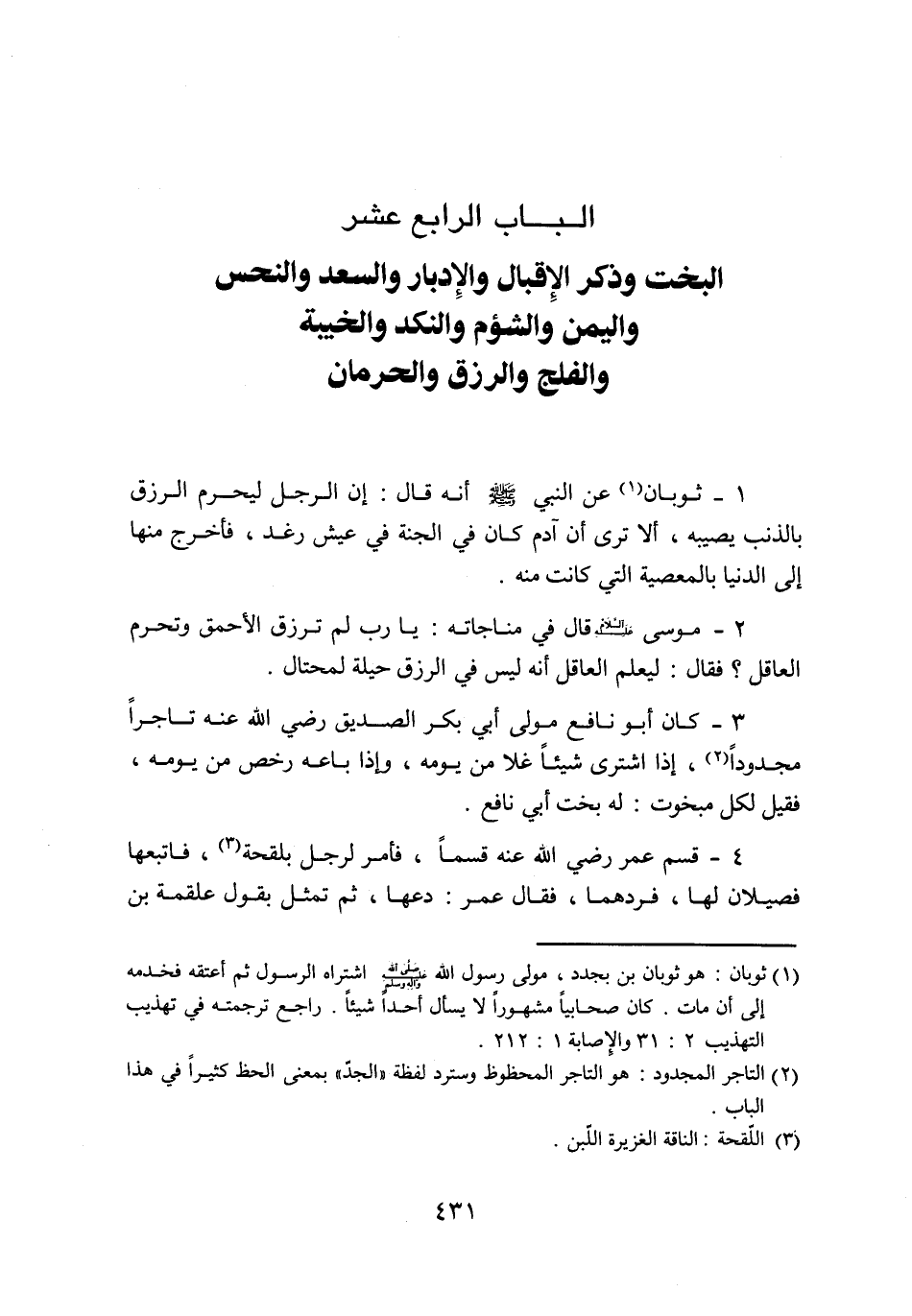 الباب الرابع عشر البخت وذكر الإقبال والإدبار والسعد والنحس واليمن والشؤم والنكد والخيبة والفلج والرزق والحرمان