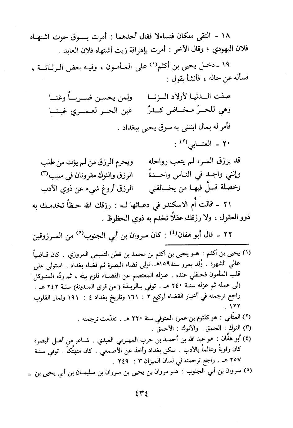 22- قال أبو هفان «4» : كان مروان بن أبي الجنوب «5» من المرزوقين