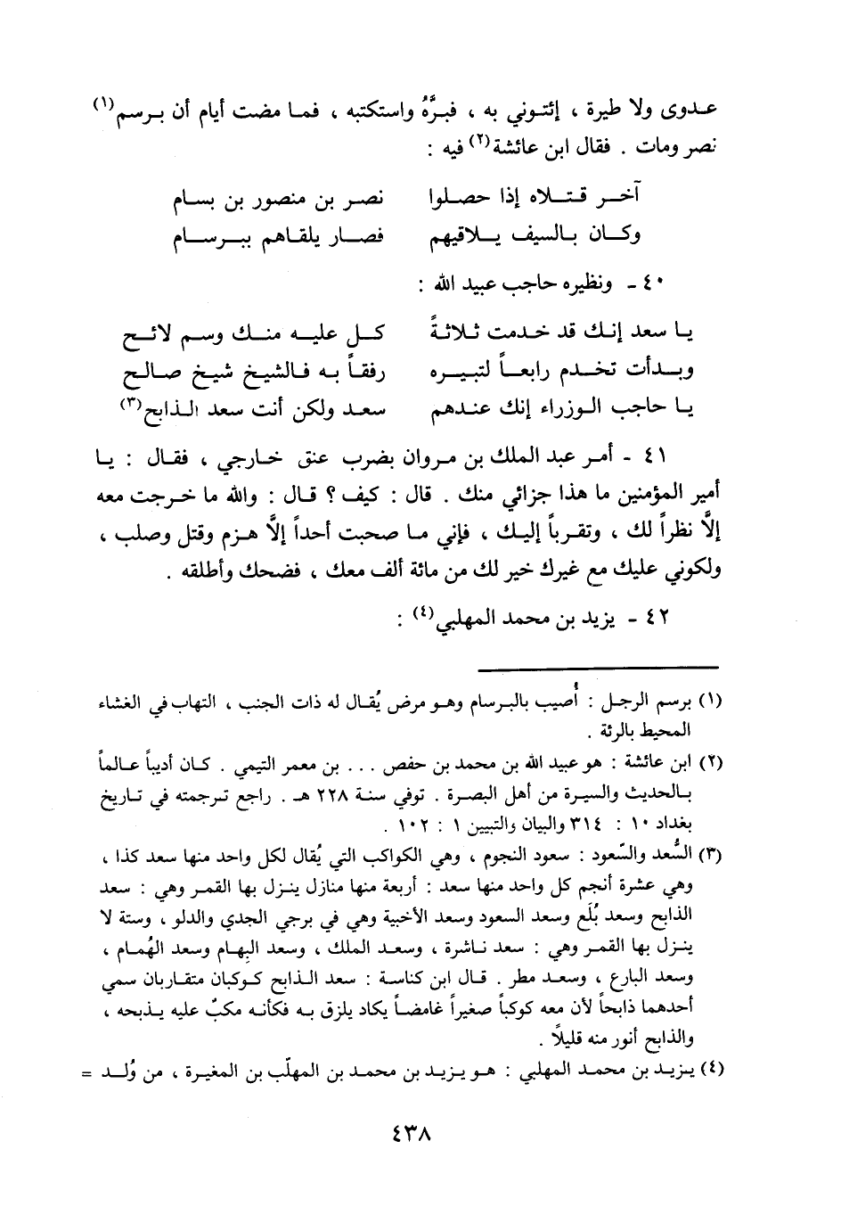 عدوى ولا طيرة، إئتوني به، فبرّه واستكتبه، فما مضت أيام أن برسم «1» نصر ومات. فقال ابن عائشة «2» فيه: