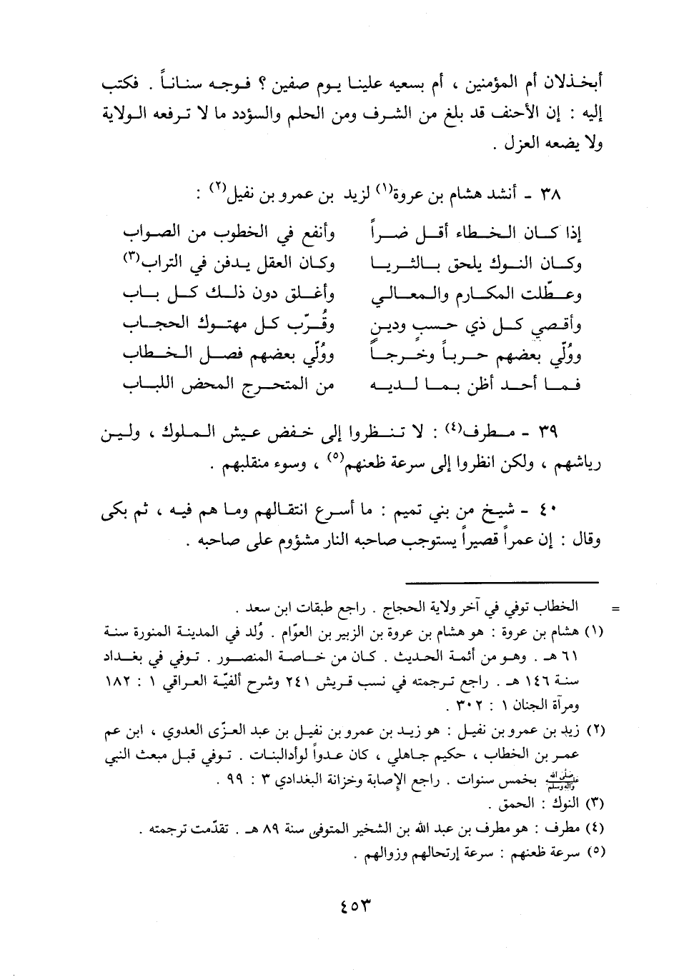 40- شيخ من بني تميم: ما أسرع انتقالهم وما هم فيه، ثم بكى وقال: إن عمرا قصيرا يستوجب صاحبه النار مشؤوم على صاحبه.