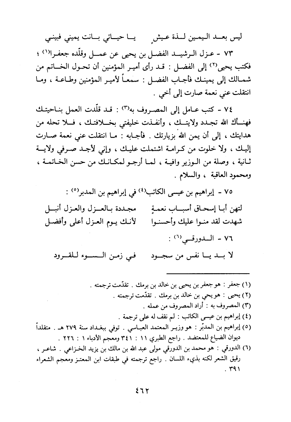 75- إبراهيم بن عيسى الكاتب «4» في إبراهيم بن المدبر «5» :