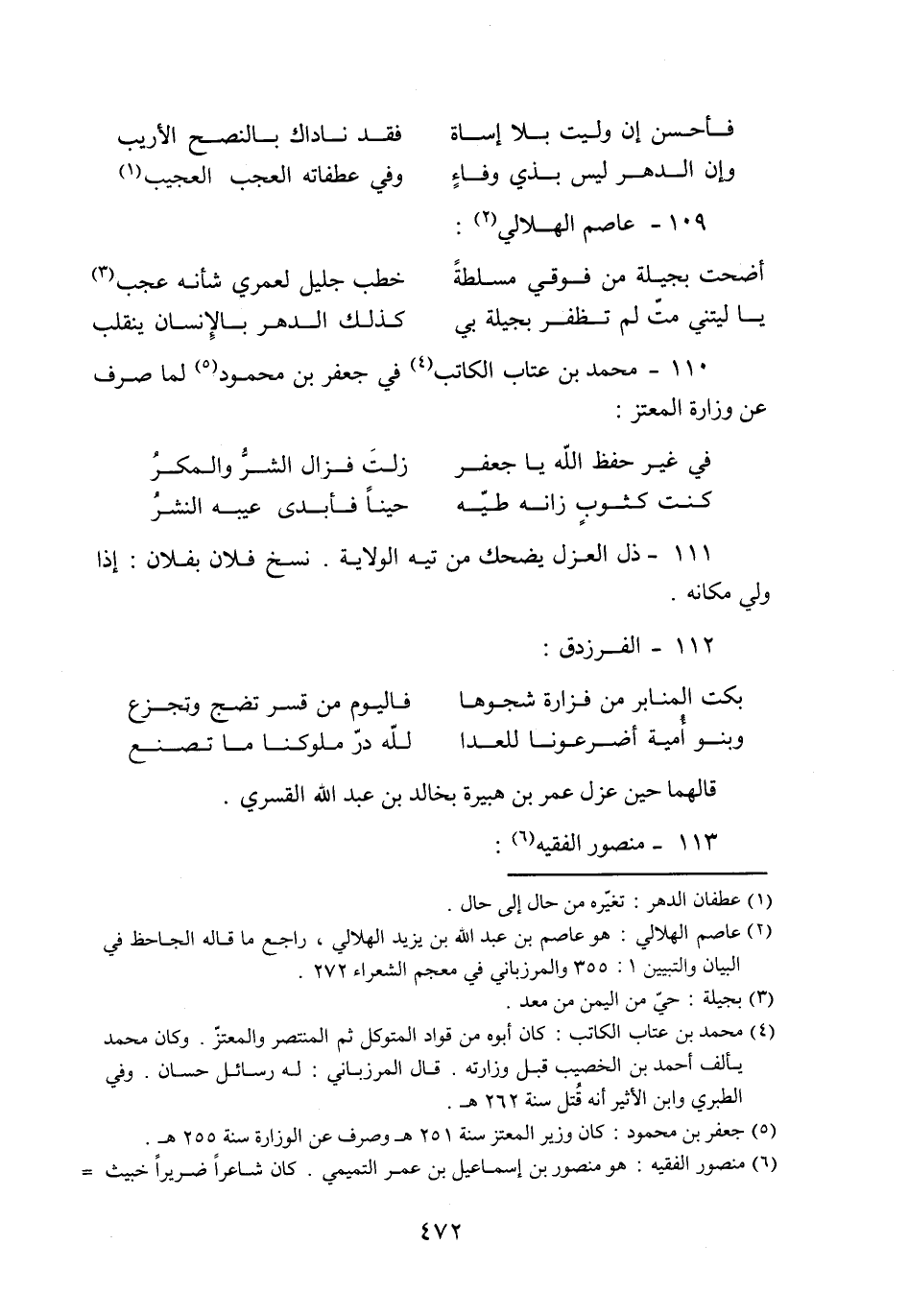 110- محمد بن عتاب الكاتب «4» في جعفر بن محمود «5» لما صرف عن وزارة المعتز: