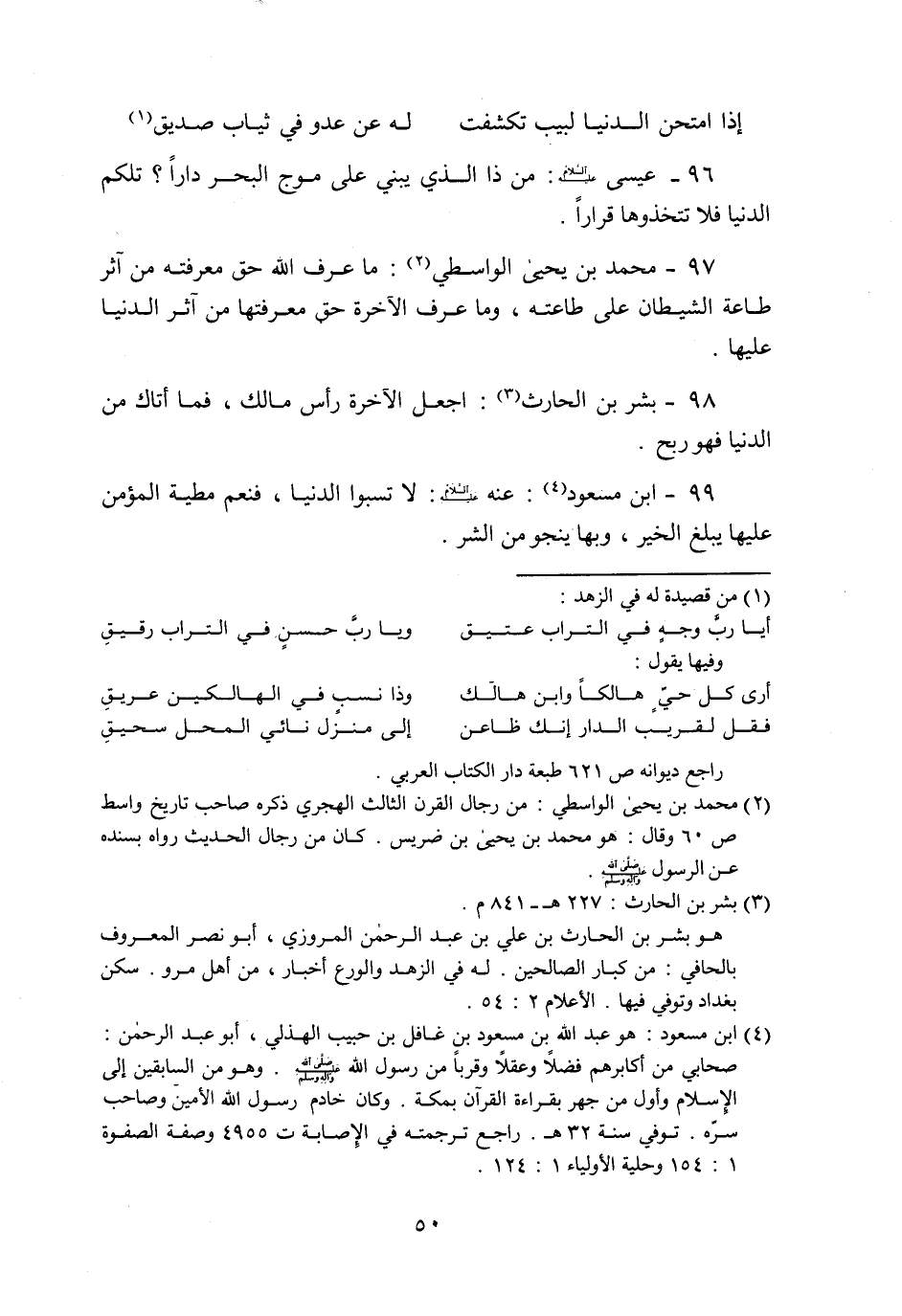 98- بشر بن الحارث «3» : اجعل الآخرة رأس مالك، فما أتاك من الدنيا فهو ربح.