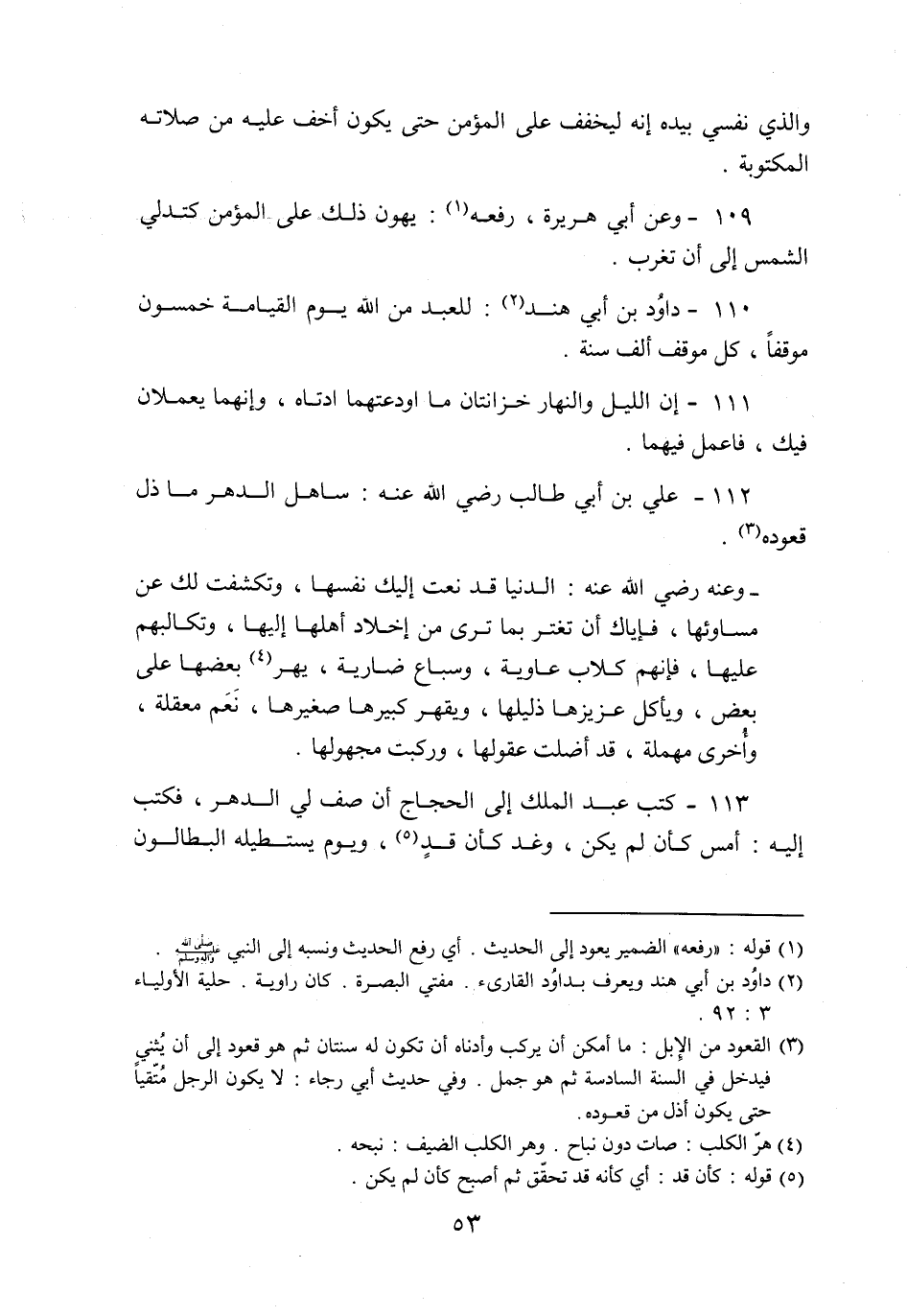 110- داود بن أبي هند «2» : للعبد من الله يوم القيامة خمسون موقفا، كل موقف ألف سنة.