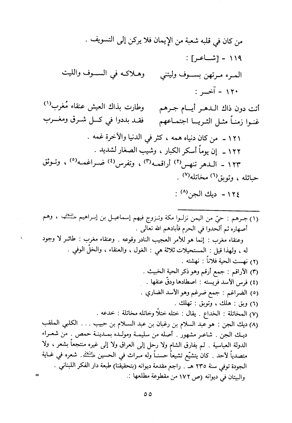 123- الدهر تنهس «2» أراقمه «3» ، وتفرس «4» ضراغمه «5» ، وتوثق حبائله، وتوبق «6» مخاتله «7» .