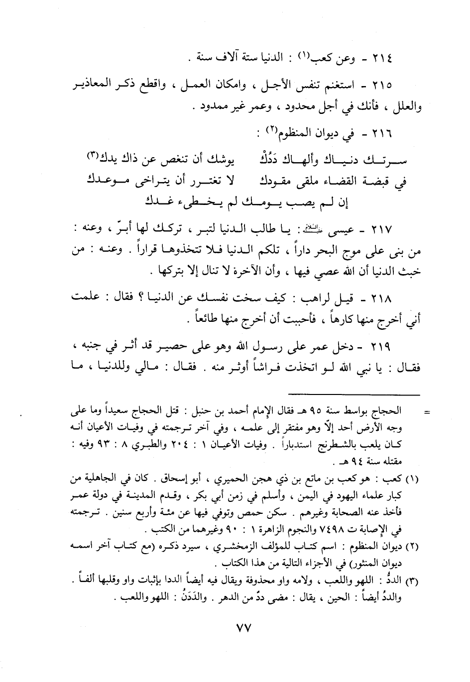214- وعن كعب «1» : الدنيا ستة آلاف سنة.