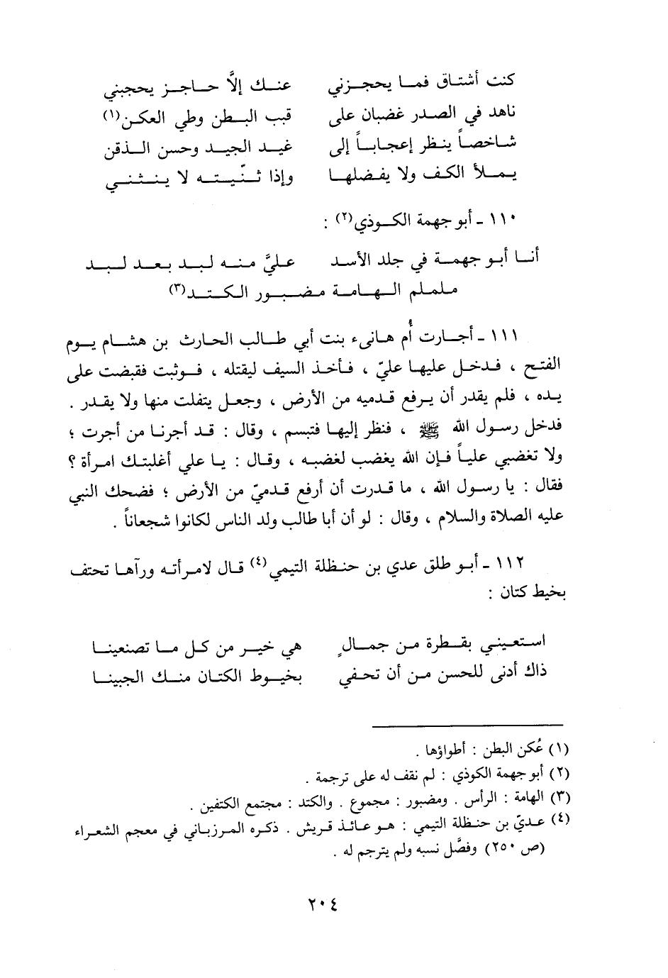 112- أبو طلق عدي بن حنظلة التيمي «4» قال لامرأته ورآها تحتف بخيط كتان: