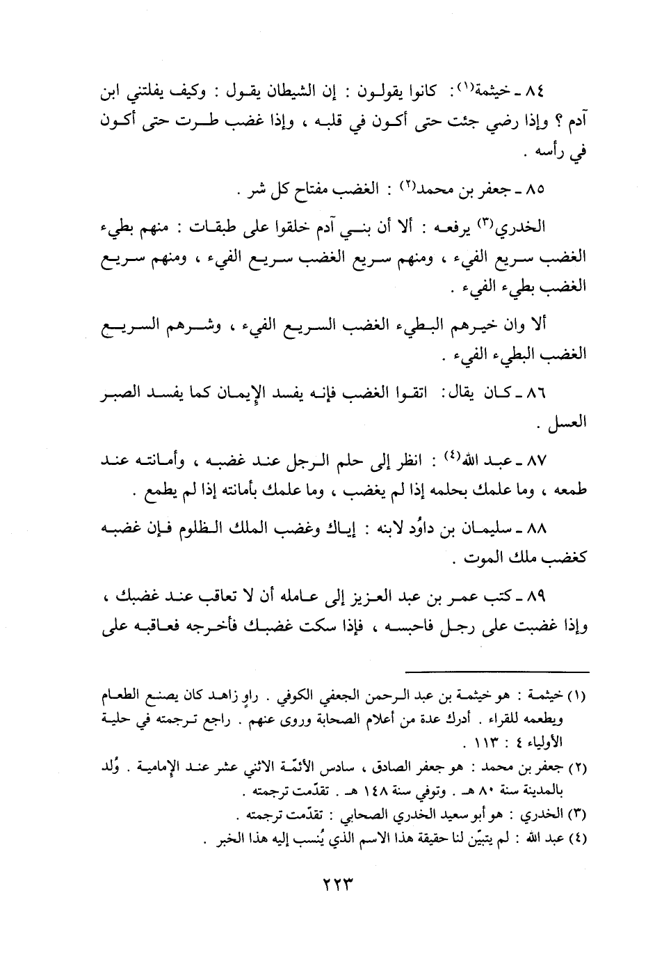 85- جعفر بن محمد «2» : الغضب مفتاح كل شر.