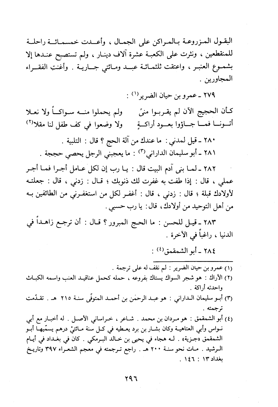 281- أبو سليمان الداراني «3» : ما يعجبني الرجل يحصي حججة.