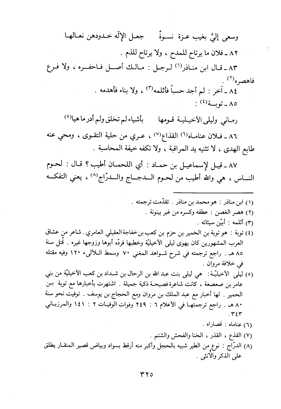 87- قيل لإسماعيل بن حماد: أي اللحمان أطيب؟ قال: لحوم الناس، هي والله أطيب من لحوم الدجاج والدرّاج «8» ، يعني التفكه