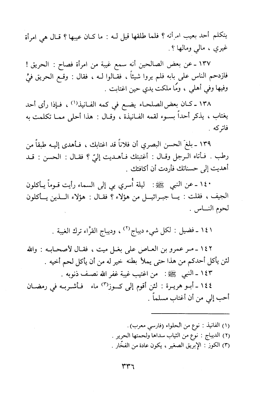 141- فضيل: لكل شيء ديباج «2» ، وديباج القرّاء ترك الغيبة.